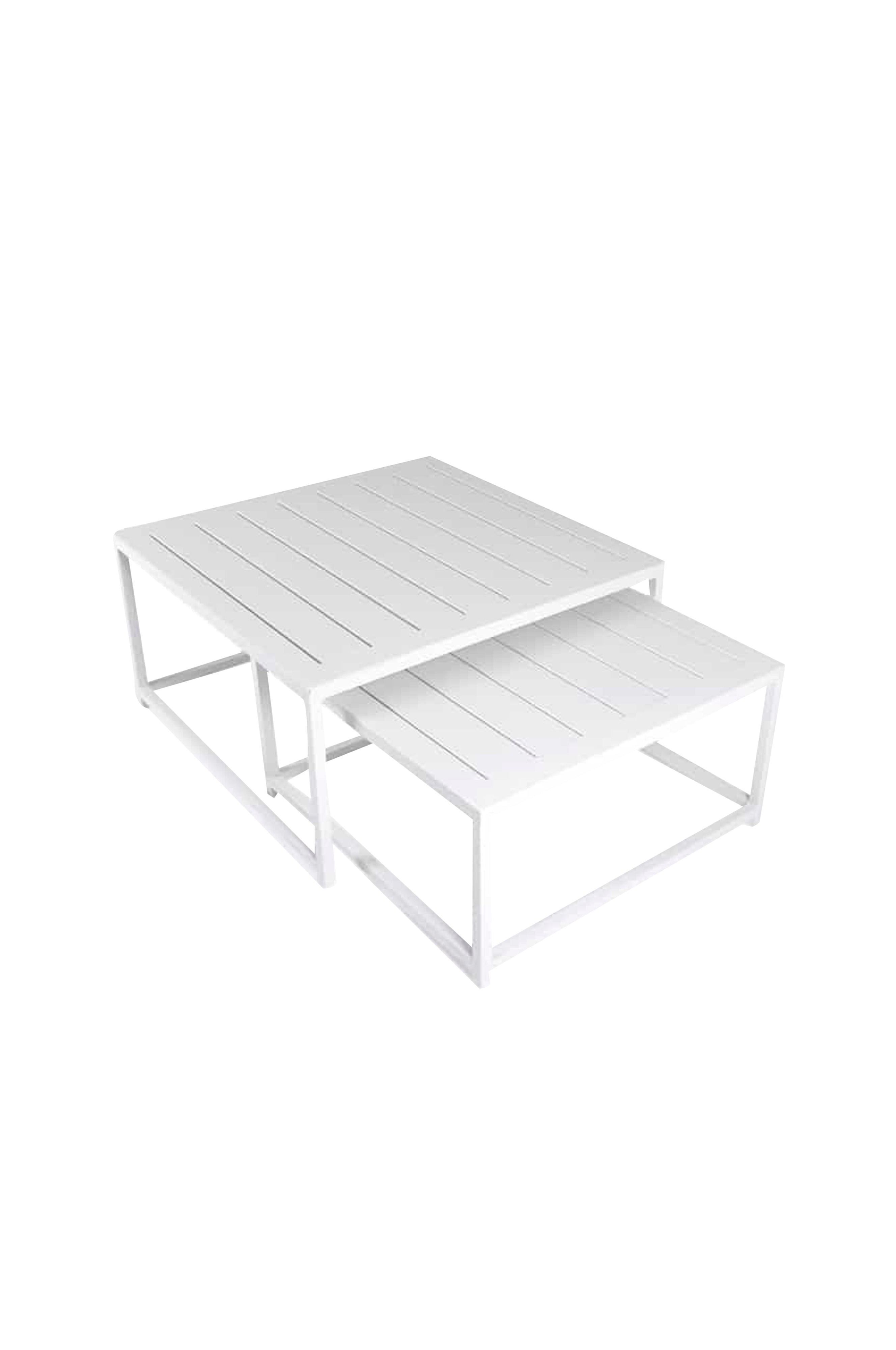Alumiininen sarjapöytä, ei ruostu materiaali: alumiini pesuohje: vesi (vaikeammat tahrat astianpesuaine) mitat: l60 x d60 x h31 cm, l70 x d70 x h36 cm.