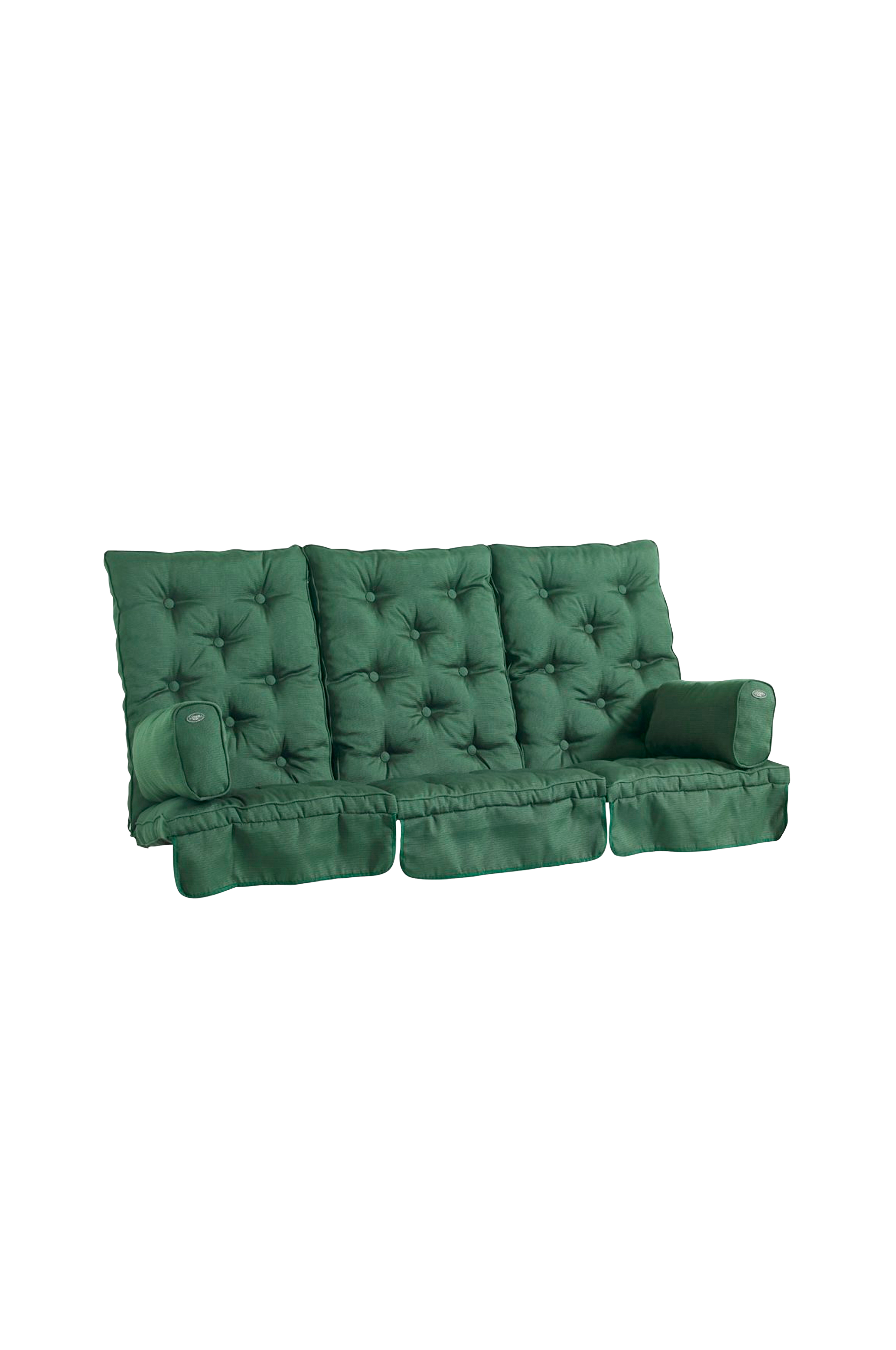 Parvipehmustetut tyynyt kuvioidusta dralonista, joissa on täyte parhaan istuvuuden ja mukavuuden takaamiseksi, sis. sivutyynyt. Laatikko-ommeltu materiaali: täyte: repeytynyt/leikattu polyeetteri ulkokangas: 100 % akryyli Pesuohjeet: kalustopesu Mitat: 56x78x50cm/tyyny