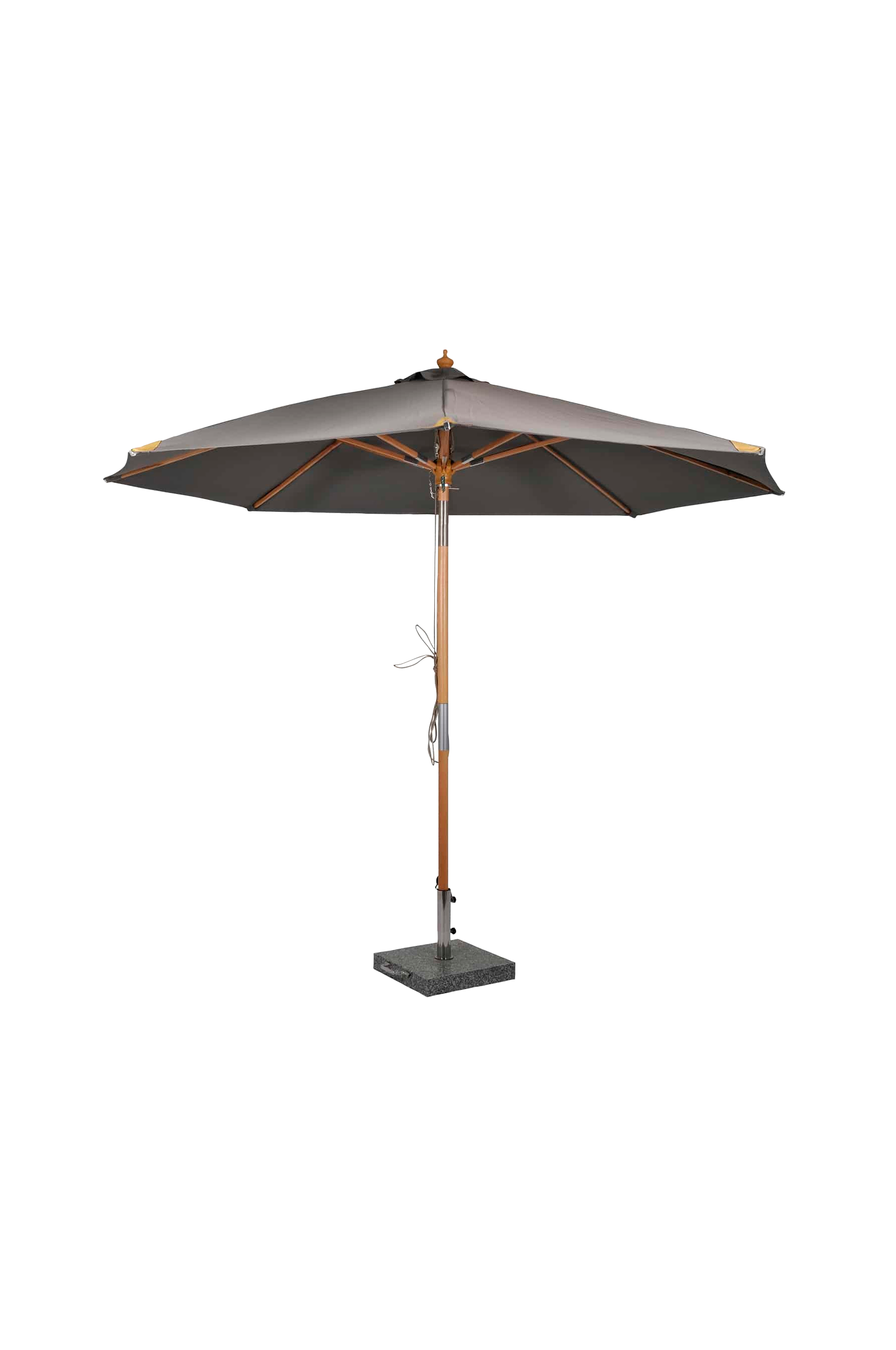 Mukava aurinkovarjo, 48mm puinen jalusta, jossa on kallistustoiminto. Kuori: 100 % polyesteriä Pesuohje: kalustepesu Mitat: ø 300 cm.