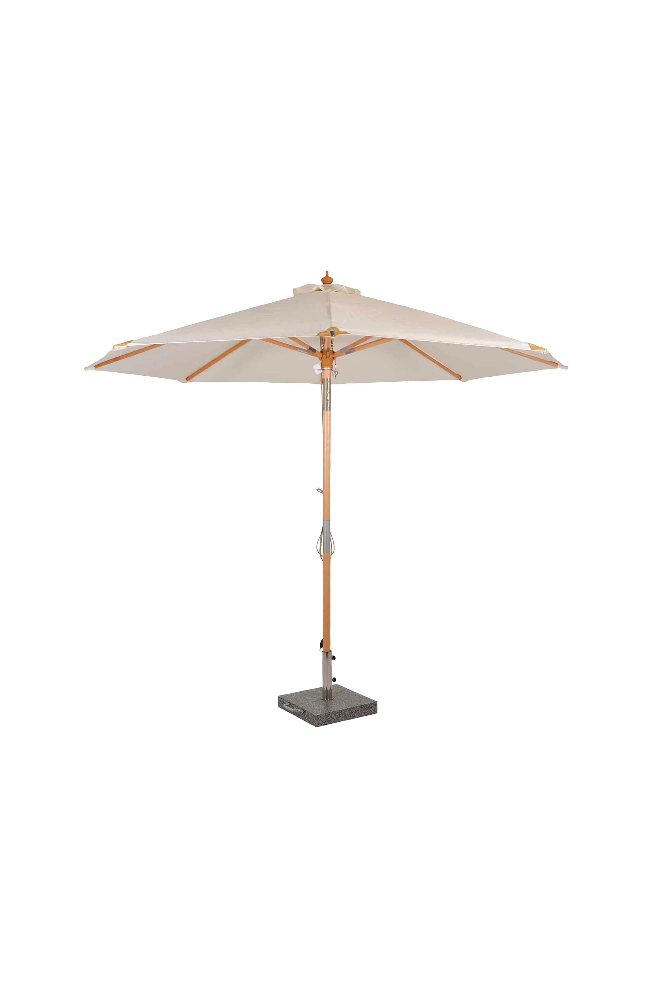 Mukava aurinkovarjo, 48mm puinen jalusta, jossa on kallistustoiminto. Kuori: 100 % polyesteriä Pesuohje: kalustepesu Mitat: ø 300 cm.