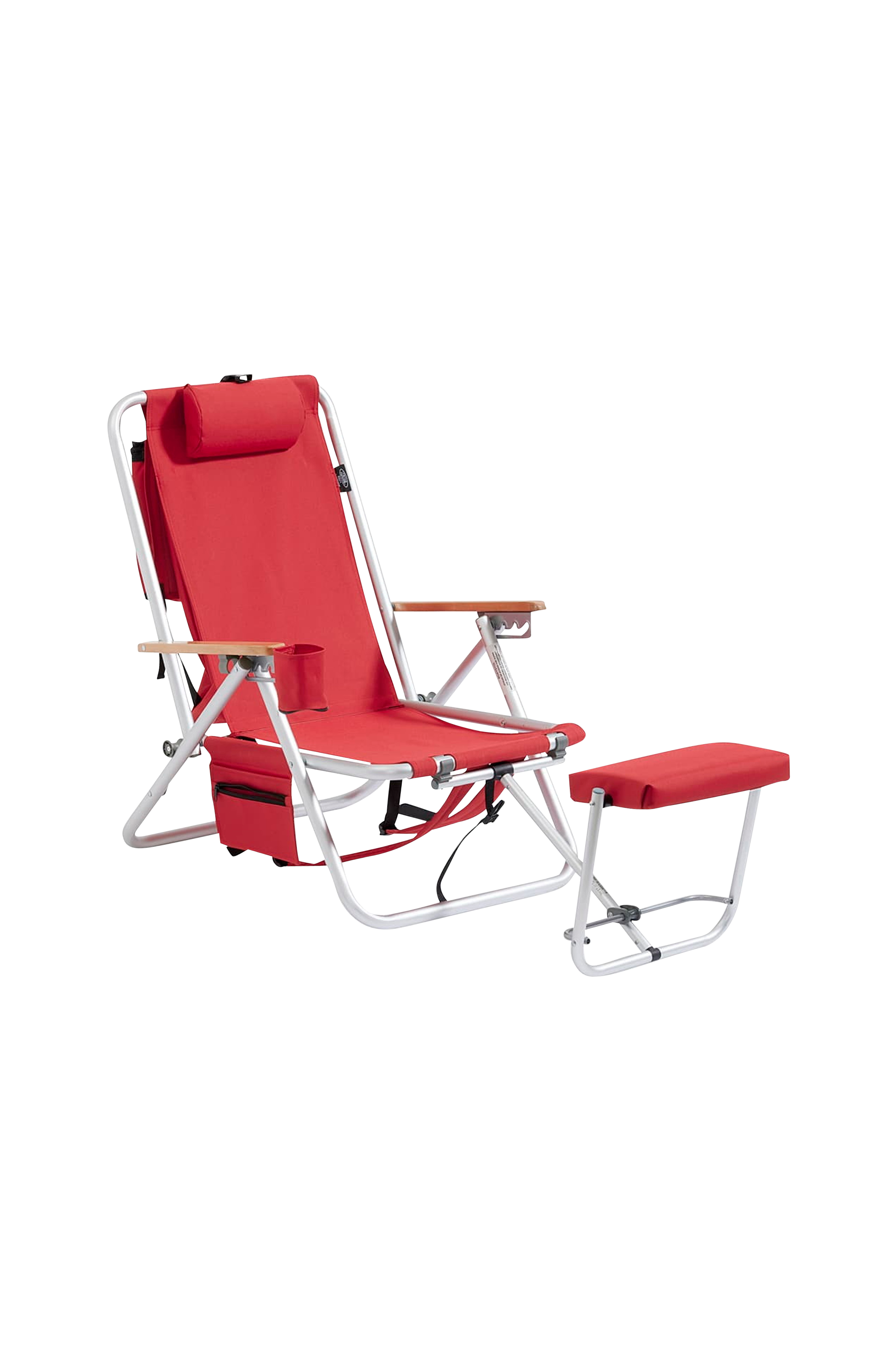 Ulkotuoli puukahvoilla, säädettävällä selkänojalla, selkänojalla ja jakkaralla. Tätä mallia on laajennettu kylmälaukulla ja matkapuhelintaskuilla. Jakkara voidaan helposti kääntää ja käyttää pienenä pöytänä. Materiaali: alumnium ja polyesteri. Enimmäispaino: 110 kg