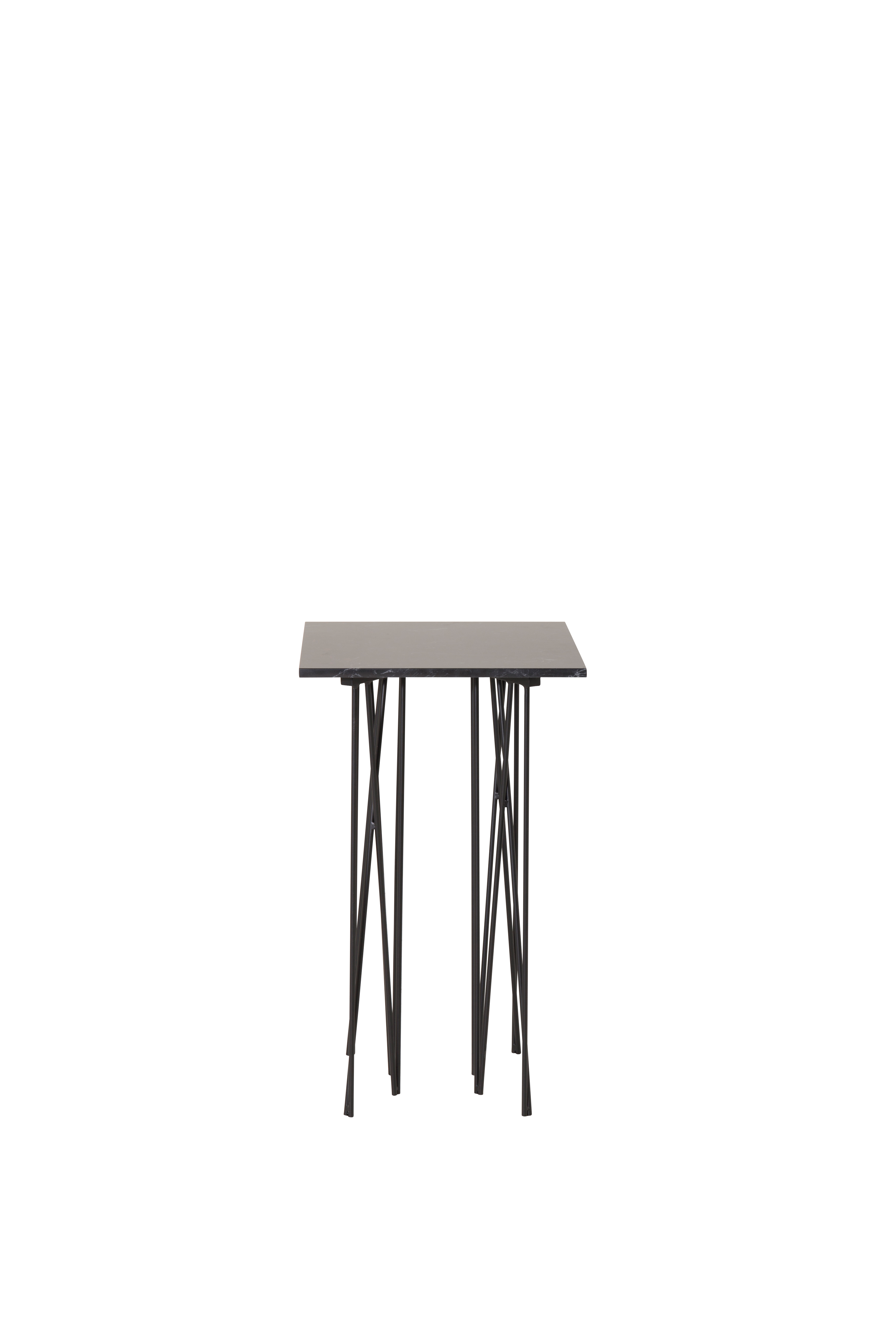 Furniture Fashion Stone -sivupöytä, jossa pöytälevy kivijäljitelmää ja jalat metallia. Pöytä on helppo koota.