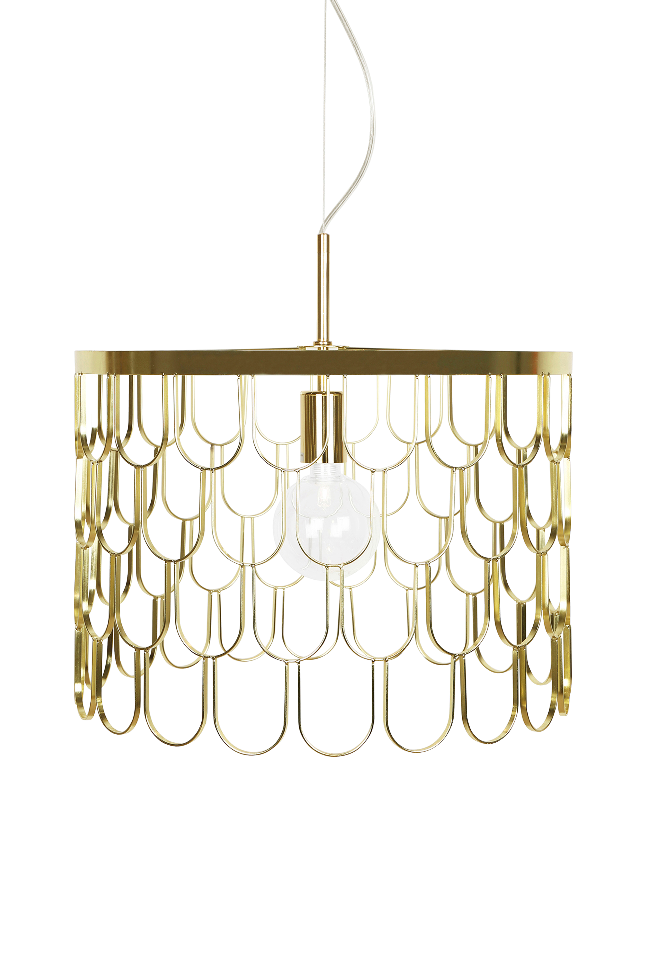 Gatsby-kattovalaisin, jossa art deco -henkisiä metallikaaria ja metallitanko. Läpikuultava johto ja vaijeri. Korkeus 32 cm, halkaisija 45 cm. Lampunpidike E27. Enintään 60 W. Lamppu ei ole mukana. Design: Patrick Hall.