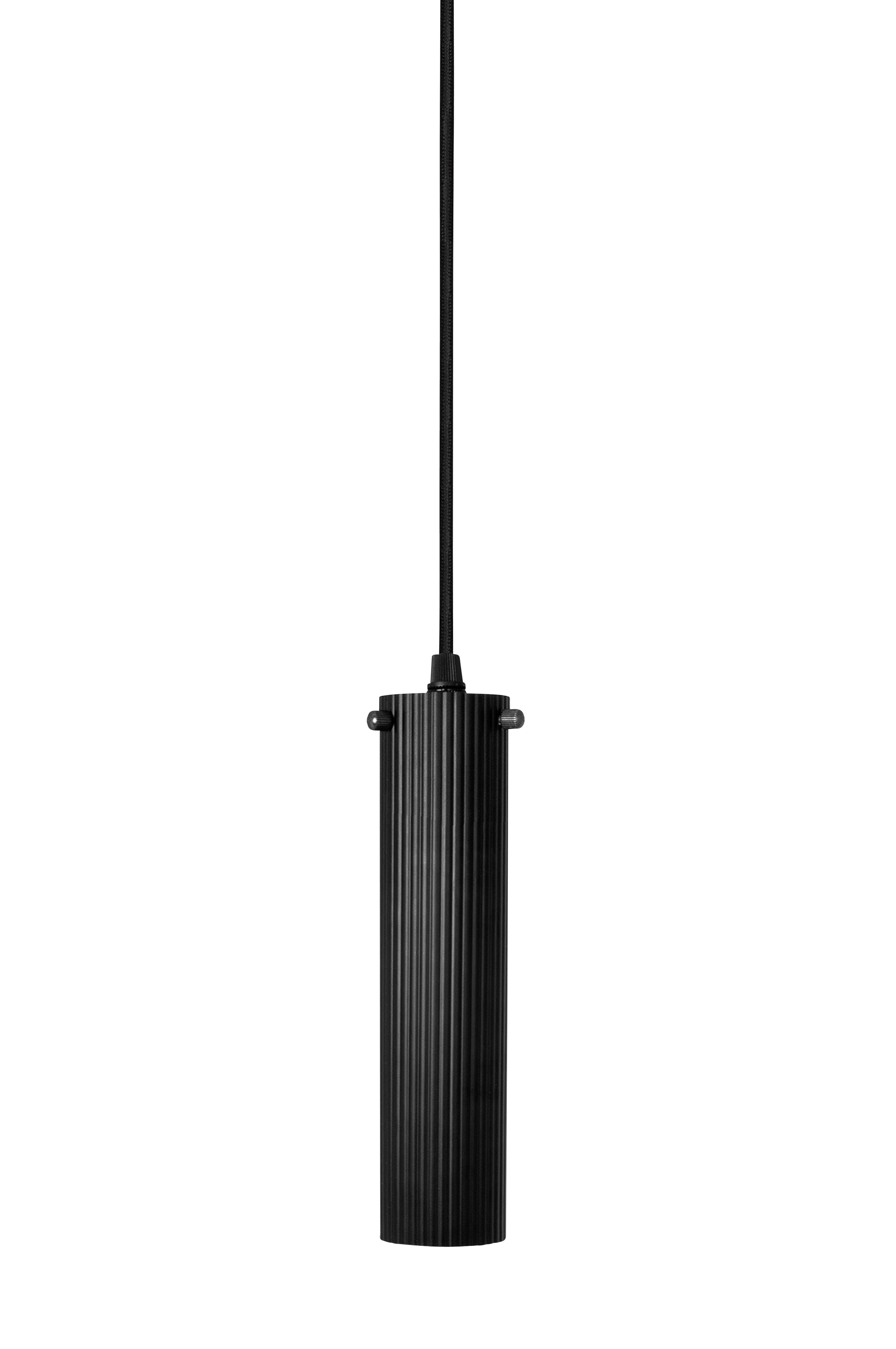 Putkimainen metalliriippuvalaisin, jossa uurrettu kuvio. Monikäyttöinen. Ripusta useita valaisimia riviin keittiösaarekkeen, baaritiskin tai pitkän ruokapöydän yläpuolelle tai vain yksi valaisin ikkunaan ikkunavalaisimeksi. Voit vaihdella riippuvalaisimen ulkonäköä erilaisilla valonlähteillä. Valitse työvaloksi suunnattava kohdelamppu, moderniin tyyliin pieni valkoinen pallolamppu tai tunnelmanluojaksi iso pallolamppu, kuten esim. Laser LED -lamppu. Hubble on valmistettu mustaksi maalastusta metallista, ja siinä on 350 cm:n pituinen musta kangasjohto, jossa katkaisin. Leveys 5,5 cm, syvyys 5,5 cm ja korkeus 22 cm. Lampunpidike 1 x E14. Enintään 40 W. Valonlähde ei sisälly toimitukseen.