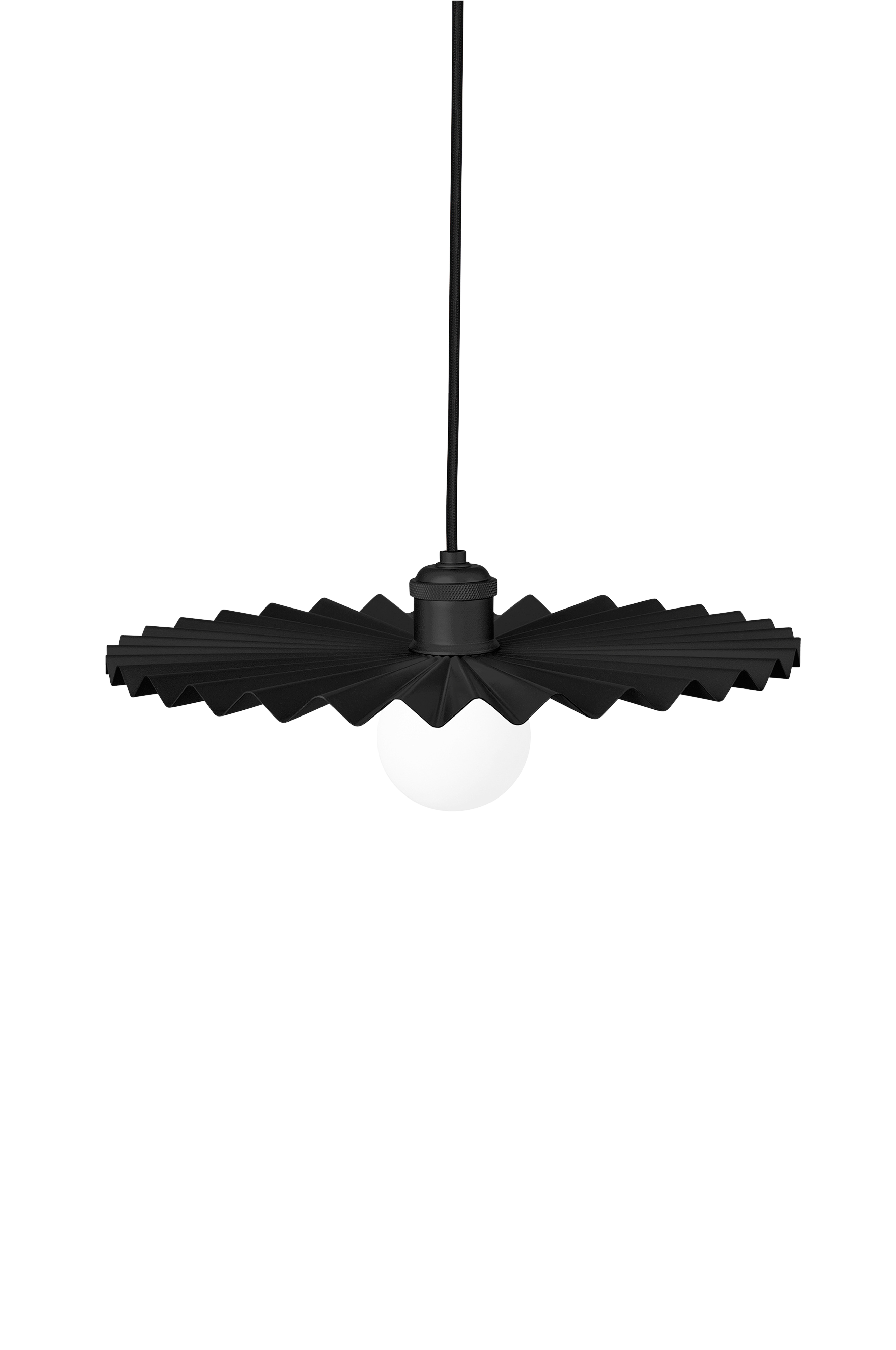 Omega-kattovalaisimen laskostettu mattamusta teräsvarjostin kerää katseet puoleensa. Valaisin on tyylikäs sekä yksin että usean valaisimen ryhmänä. Omega-valaisimessa on 120 cm:n pituinen musta kangasjohto ja musta muovikattokuppi. Suunnittelija GL Design Studio. Leveys 50 cm, syvyys 50 cm ja korkeus 7 cm. Lampunpidike 1 x E27. Enintään 60 W. Valonlähde ei sisälly toimitukseen.