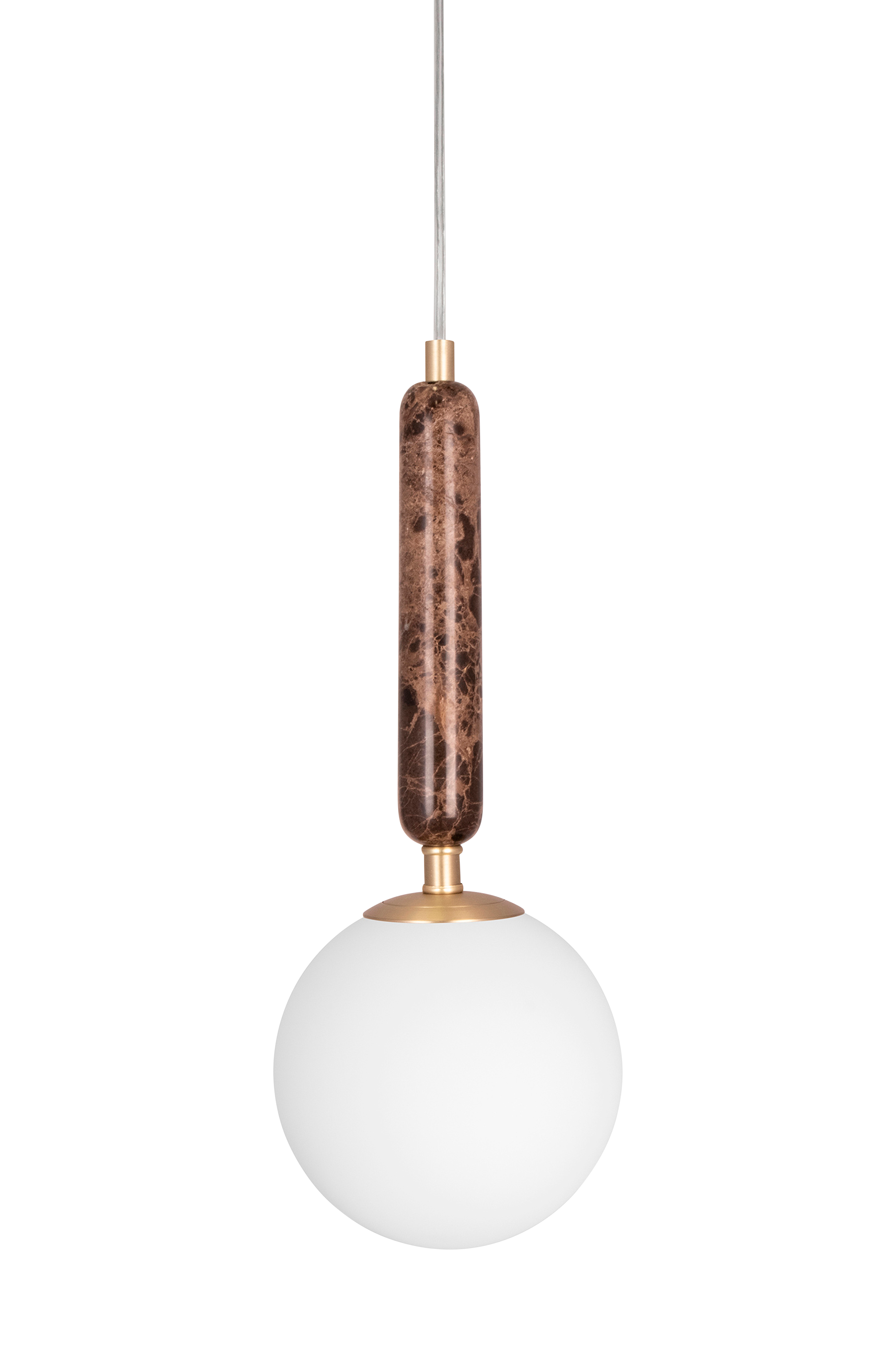 Ylellinen täysmarmorinen Torrano on ihastusta herättävä sisustuselementti. Pyöreälinjainen muotoilu ja kova marmorikivi muodostavat kiinnostavan kontrastin. Täysmarmorista valmistetussa valaisimessa on valkoinen opaalilasikupu, yksityiskohdat harjatun messinginväristä metallia ja 200 cm:n pituinen läpikuultava johto, jossa katkaisin. Suunnittelija Patrik Hall. Leveys 20 cm, syvyys 20 cm ja korkeus 53 cm. Lampunpidike 1 x E14. Enintään 40 W. Valonlähde ei sisälly toimitukseen.