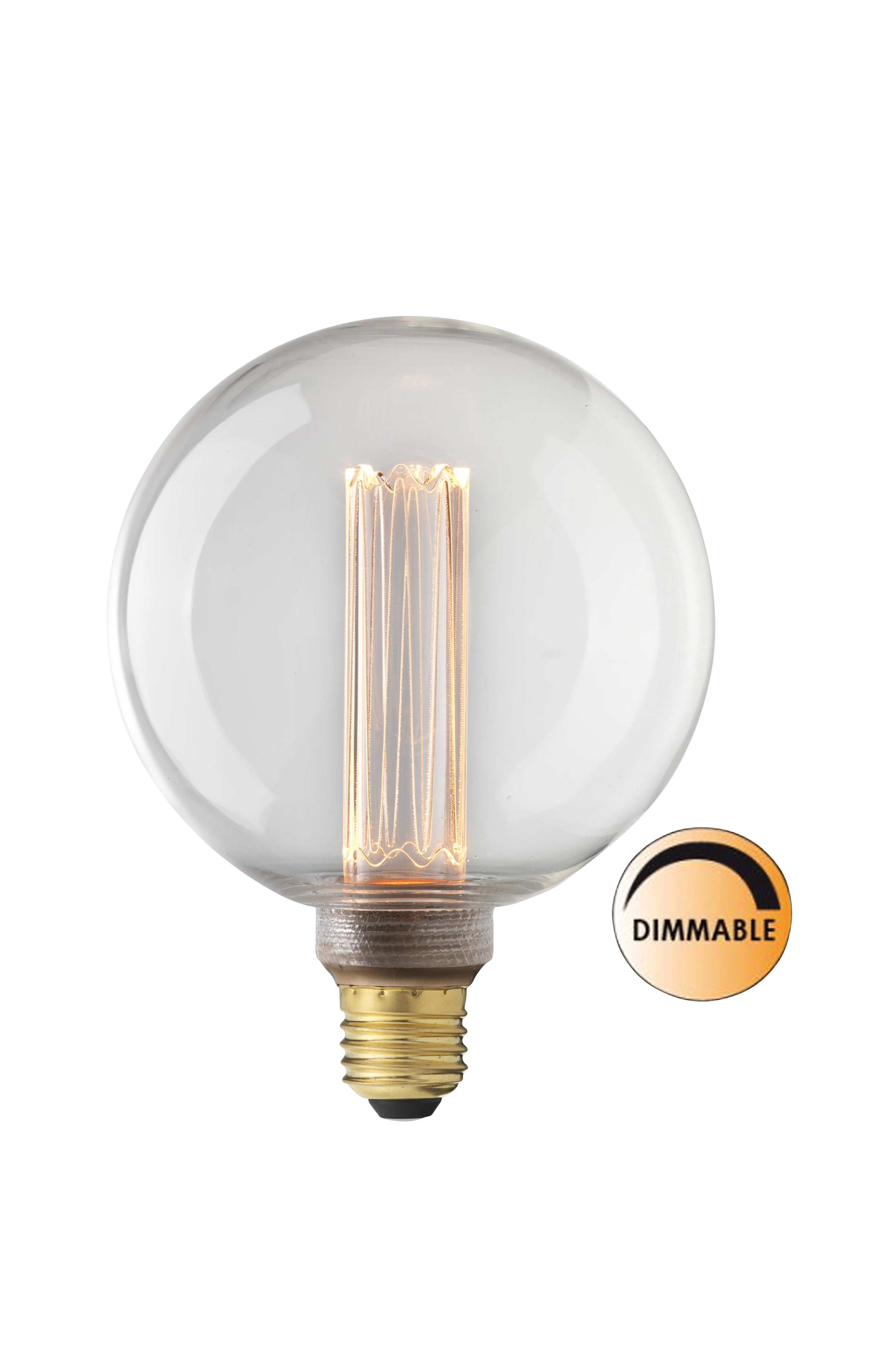 Innovatiivinen ja koristeellinen valonlähde, jossa Laser LED -teknologia. Himmennettävä. Valo jää laserleikattuihin kohtiin luoden pehmeän ja miellyttävän valon, jossa on entisaikojen Edison Filament -henkeä. E27 LED -pallolamppu 125 mm kirkas lasi 3,5 W (= 25 W), 2000 K, 110 lm
