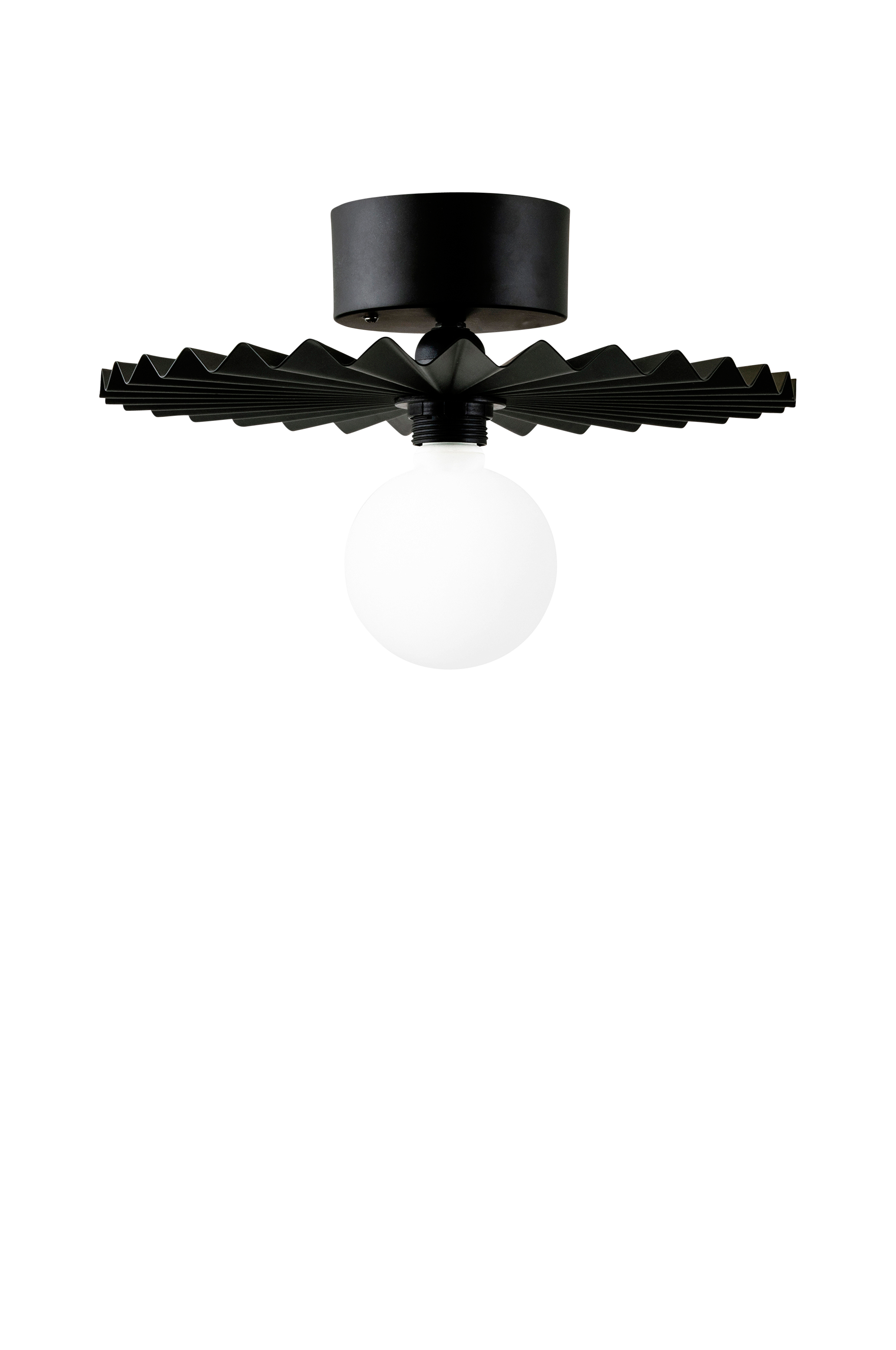 Omega-plafondi, jossa laskostettu varjostin maalattua metallia. Kaunis yksityiskohta katossa tai seinällä. Sisältää liitännän seinään, tilaa kruunupistoke kattoon erikseen. Suunnittelija GL Design Studio. Halkaisija 35 cm ja korkeus 15 cm. Lampunpidike: 1xE27. Enintään 60 W. Valonlähde ei sisälly toimitukseen. Maadoittamaton. Kaariripustusjärjestelmä.