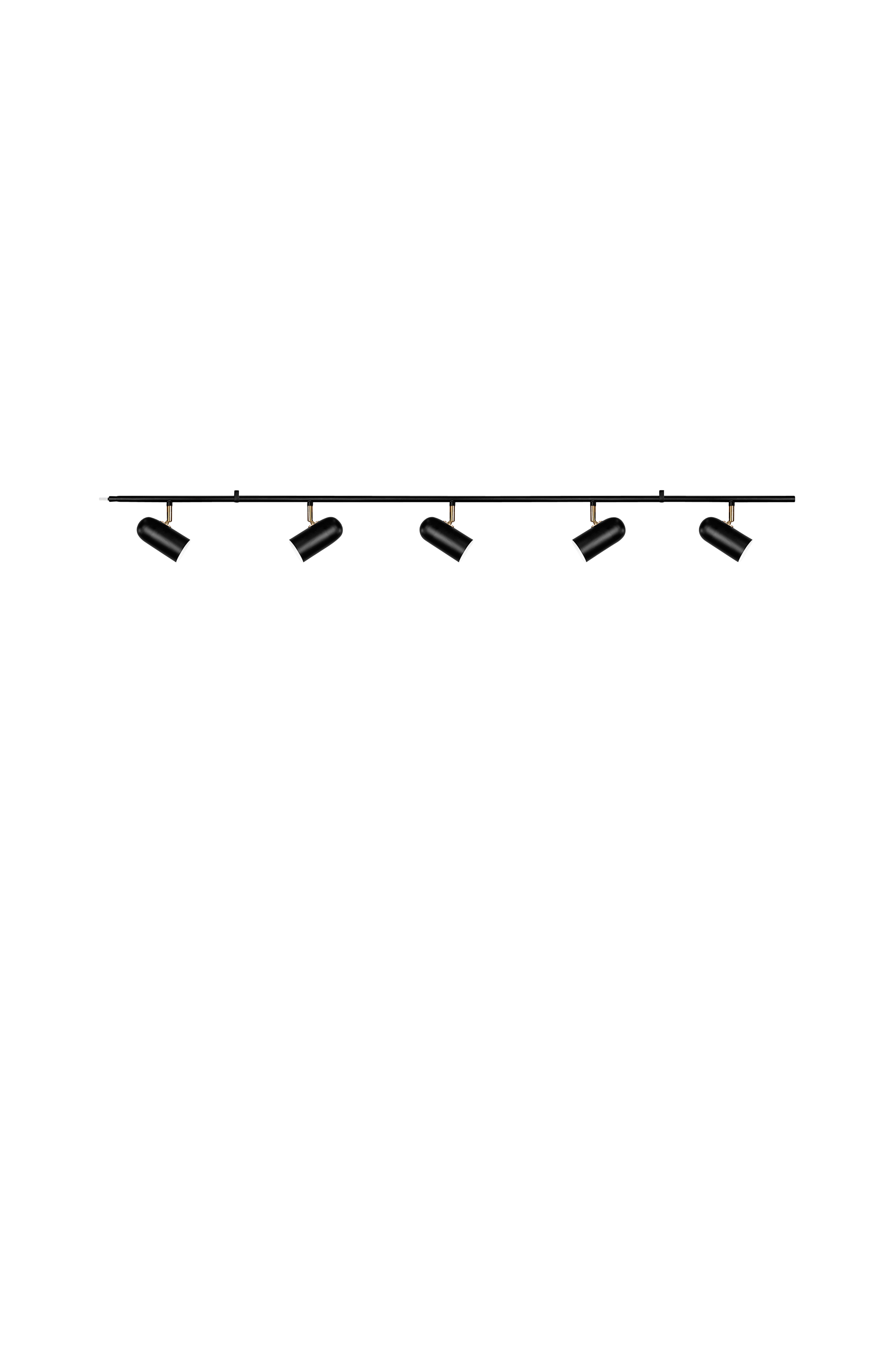 Swan 5 on tyylikäs moderni kiskoplafondi, jossa on pehmeästi kaareutuvat muodot. Viitta kaunista varjostinta voidaan kallistaa korkeus- ja sivusuunnassa, mikä on täydellistä, kun tarvitset kohdistettua valoa esim. aulaan tai vaatekaapin eteen. Valaisin on mustaksi maalattua metallia, ja siinä on harjatut messinginväriset metalliyksityiskohdat. Valaisimessa on 350 cm:n pituinen kangaspäällysteinen johto, jossa kytkentärasia. Toimitukseen sisältyy kaksi metallikiinnikettä katto- tai seinäasennukseen. Suunnittelija Malin Lundmark. Leveys 153 cm, syvyys 60 cm ja korkeus 15 cm. Lampunpidike 5 x GU10. Enintään 28 W. Valonlähde ei sisälly toimitukseen. Maadoittamaton.