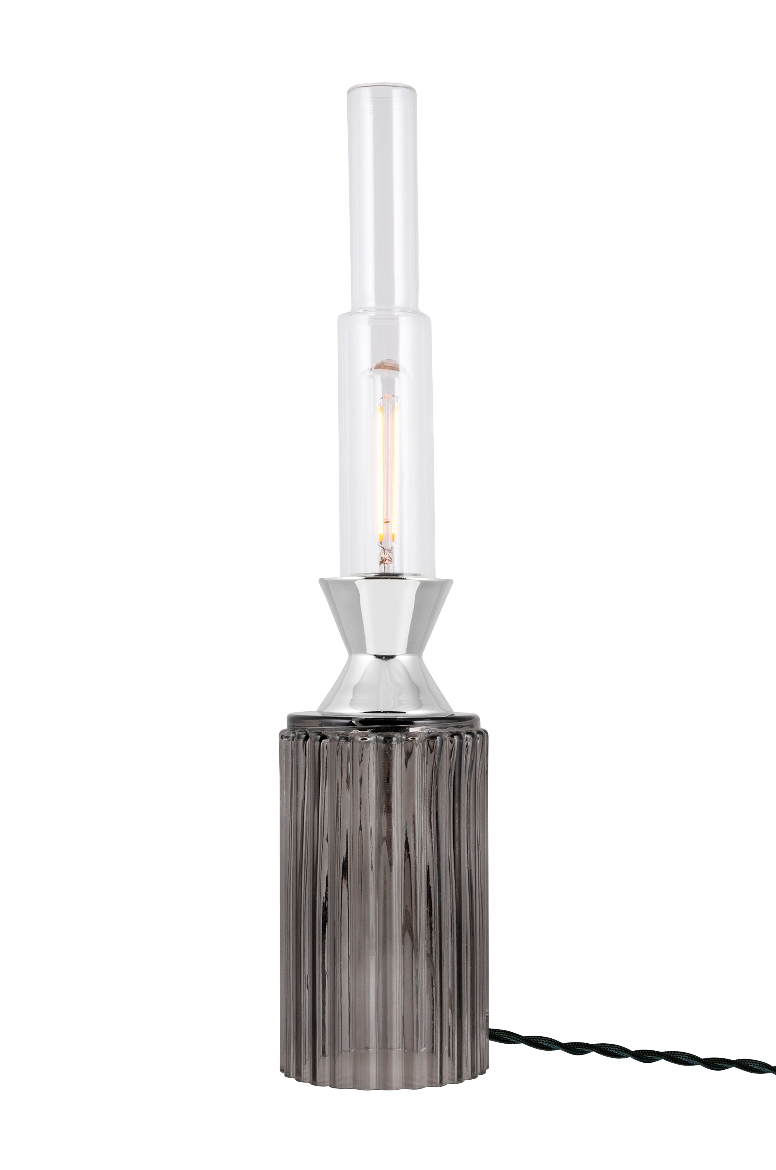 Tyylikäs pöytävalaisin, joka on saanut inspiraationsa tunnelmallisista vanhanajan öljylampuista. Uurrettu lasi ja detaljit metallia. Klassinen putkenmuotoinen lasi valonlähteen päällä. Ester-valaisimessa on 200 cm:n pituinen helmiäisenvärinen kierretty kangasjohto, jossa katkaisin. Suunnittelija: Mikael Holvik. Leveys: 9, syvyys: 9, korkeus: 42 (cm). Lampunpidike: 1xE14, enintään 40 W.