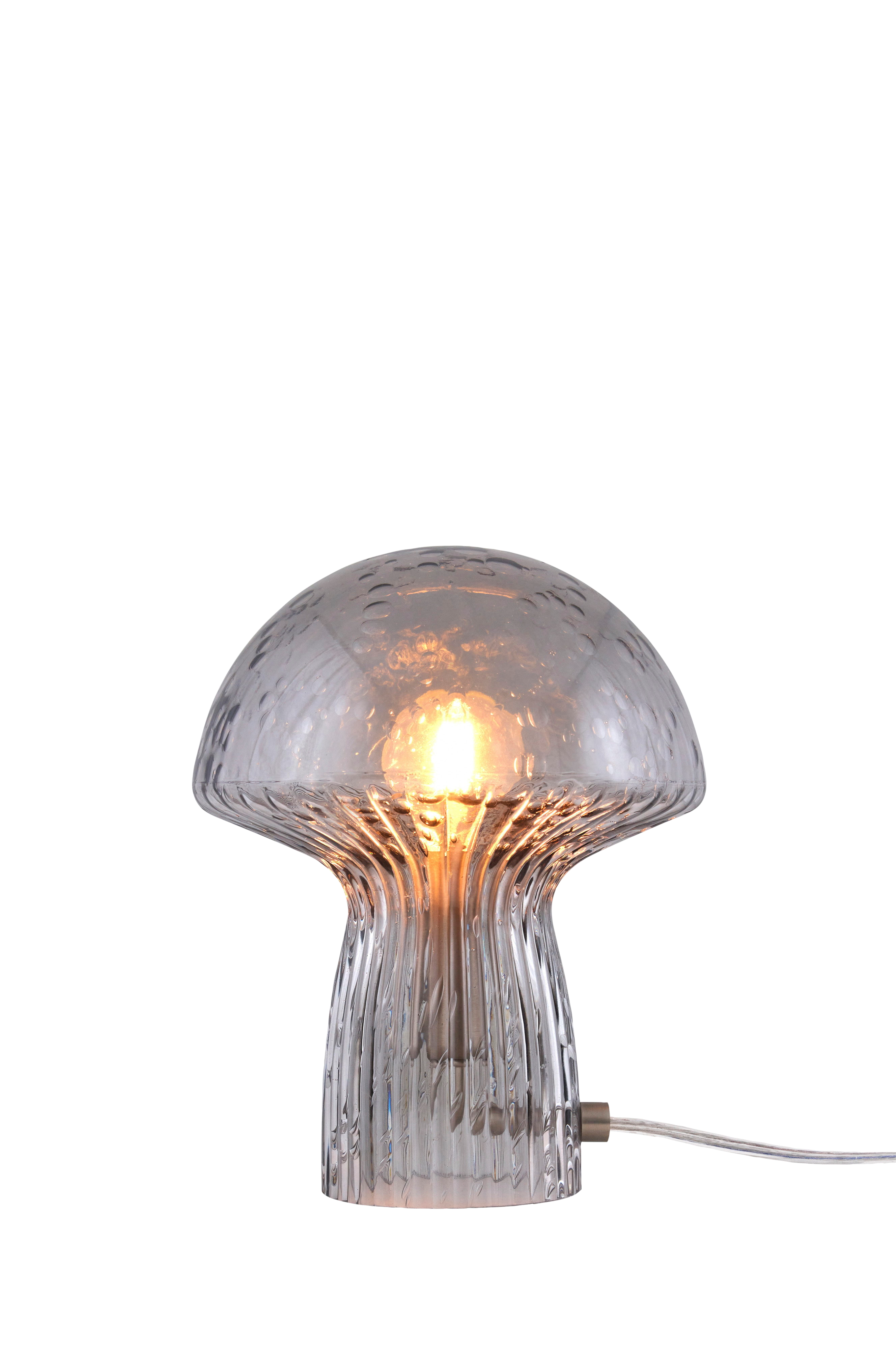 Fungo-pöytävalaisin on valmistettu kirkkaasta lasista. Uurrettua lasia jalassa ja uurteet kulkevat koko matkan ylös "lakin" alle. Lasissa on pieniä ilmakuplia, jotka luovat kauniin vaikutelman valaisimen ollessa päällä. Valaisimessa on metallinen lampunpidike ja 200 cm:n pituinen läpikuultava johto, jossa katkaisin ja pistoke. Fungo 16 Special Edition on pienehkö pöytävalaisin, joka sopii hienosti kirjahyllyyn tai lipaston päälle kohdevalaisimeksi. Suunnittelija: GL Design Studio. Leveys 16 cm, syvyys 16 cm ja korkeus 20 cm. Lampunpidike: 1 x E14, enintään 40 W. Valonlähde ei sisälly toimitukseen.