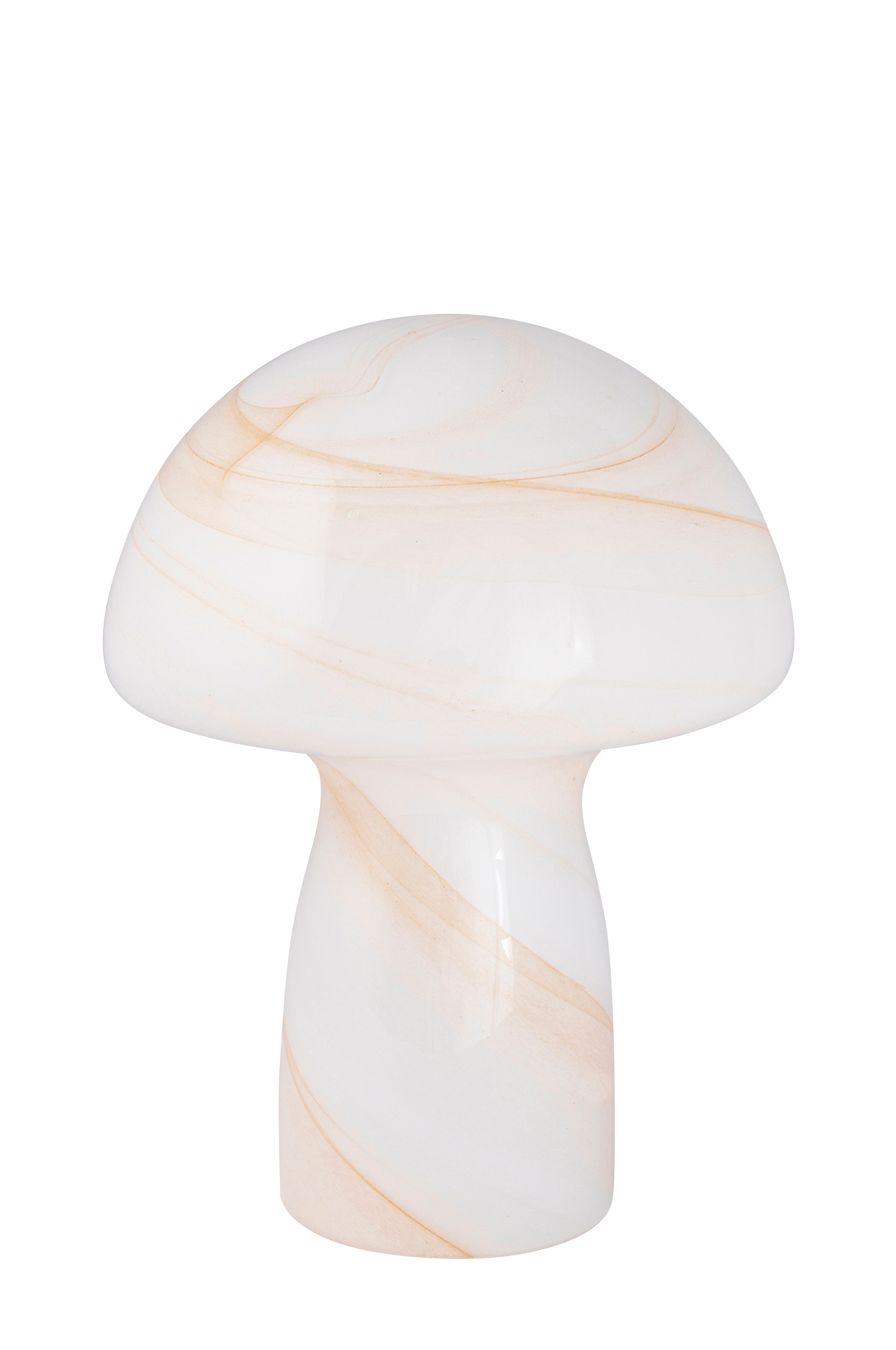 Pieni valkoinen ja vaaleanruskea lasinen sienivalaisin on saanut inspiraatiota metsästä. Se antaa miellyttävän pehmeän valon ja sopii hyvin kirjahyllyyn tai senkin päälle. Valaisin on valkoista lasia, ja siinä on vaaleanruskea kuvio sekä 200 cm:n pituinen läpikuultava johto, jossa katkaisin. Suunnittelija GL Design Studio. Leveys 16 cm, syvyys 16 cm ja korkeus 20 cm. Lampunpidike 1 x E14. Enintään 40 W. Valonlähde ei sisälly toimitukseen.