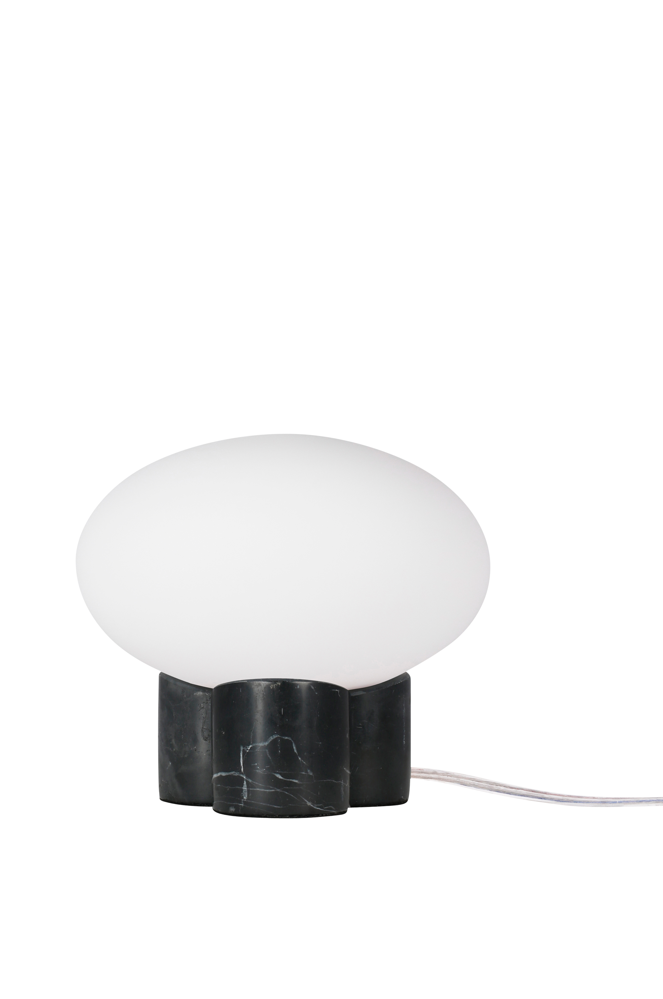 Ylellinen ja leikkisä Mammut-pöytävalaisin, jossa on lyhyt jalka ja iso lasikupu. Veistoksellinen muoto saa valaisimen tuntumaan vankalta ja näyttämään koristeelliselta. Lampunjalka on kiillotettua ja lujaa vihreää marmoria, jossa on valkoinen marmorikuviointi. Lampunjalkaan on yhdistetty pyöreä mattavalkoinen ja litistetty lasikupu, jonka hieman ylisuuri koko luo leikkisän ilmeen. Mammut-valaisimessa on 200 cm:n pituinen läpikuultava johto, jossa läpikuultava katkaisin ja pistoke. Suunnittelija: GL Design Studio. Valonlähde ei sisälly toimitukseen.