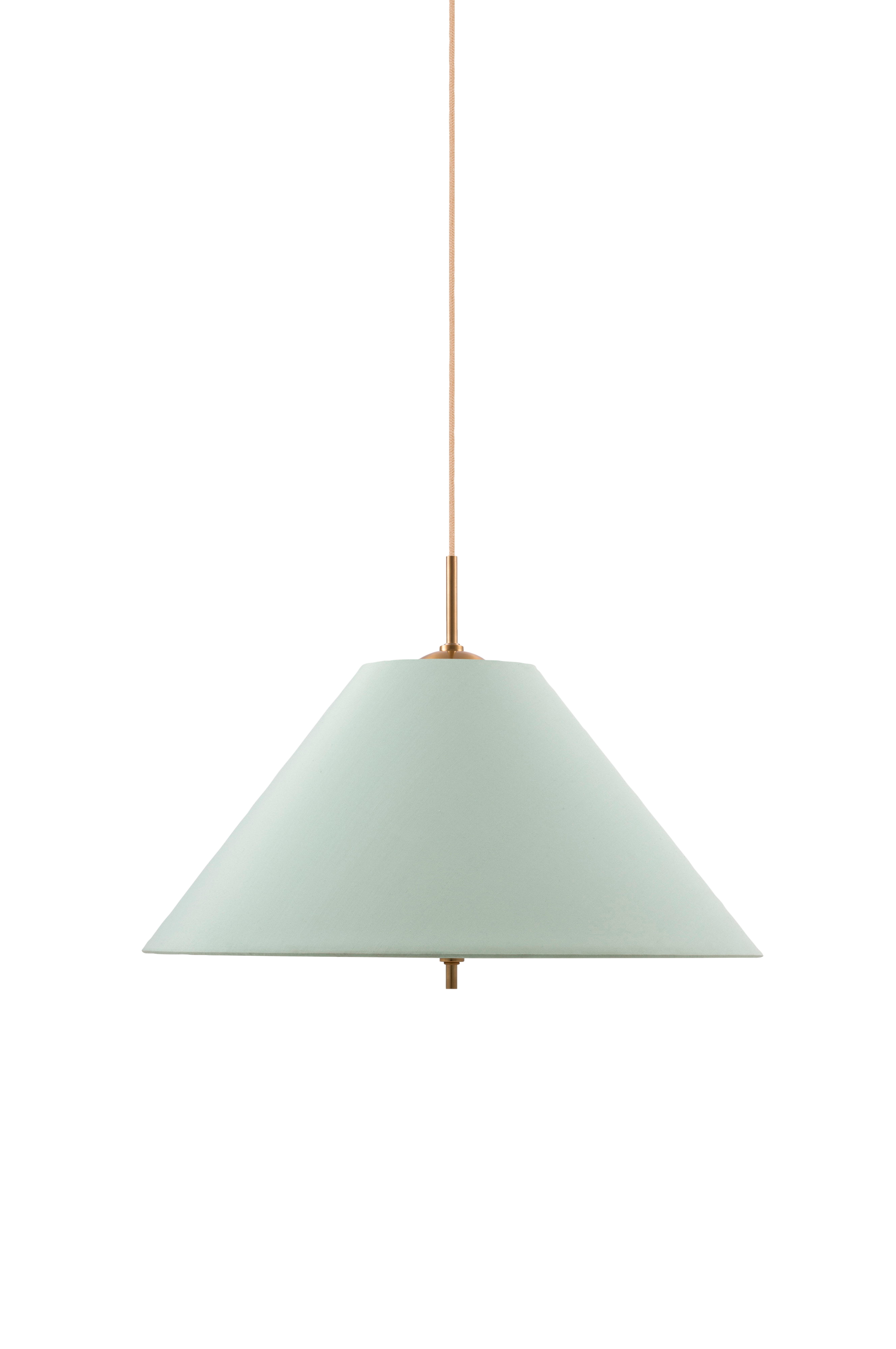 Iirisriipuksesta tulee kaunis koru katossa. Kaunis tekstiilivarjostin on käsintehty puuvillasta ja täydennetty messinkisillä yksityiskohdilla. Varjostin on alhaalta peitetty puuvillaisella häikäisysuojalla, joka levittää miellyttävää valoa. Valaisimessa on 120 cm pitkä beige tekstiilikaapeli messinkisellä kattokupilla, valaisimen pistoke kattoliitäntää varten myydään erikseen.