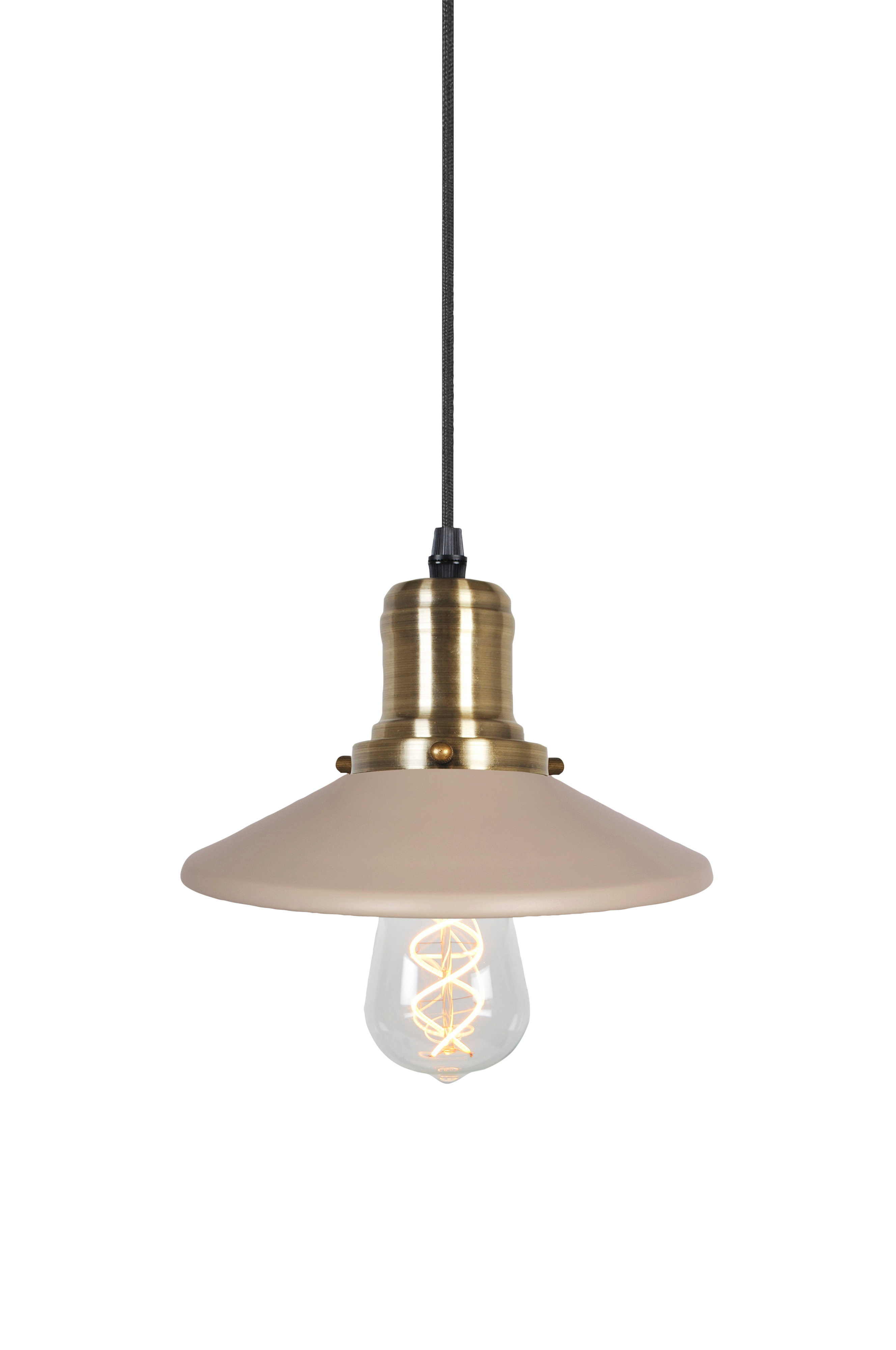 Disc-valaisin on vuosisadan vaihteen inspiroima pieni riippuvalaisin. Metallinen lampunvarjostin muodostaa kauniin kontrastin antiikkimessinginväriselle metalliselle lampunpidikkeelle. Valaisimen mukana toimitetaan 350 cm pitkä kangasjohto, jossa on musta katkaisin ja pistotulppa. Lampunpidike: 1 x E27, 60 W. Valonlähde ei sisälly toimitukseen.