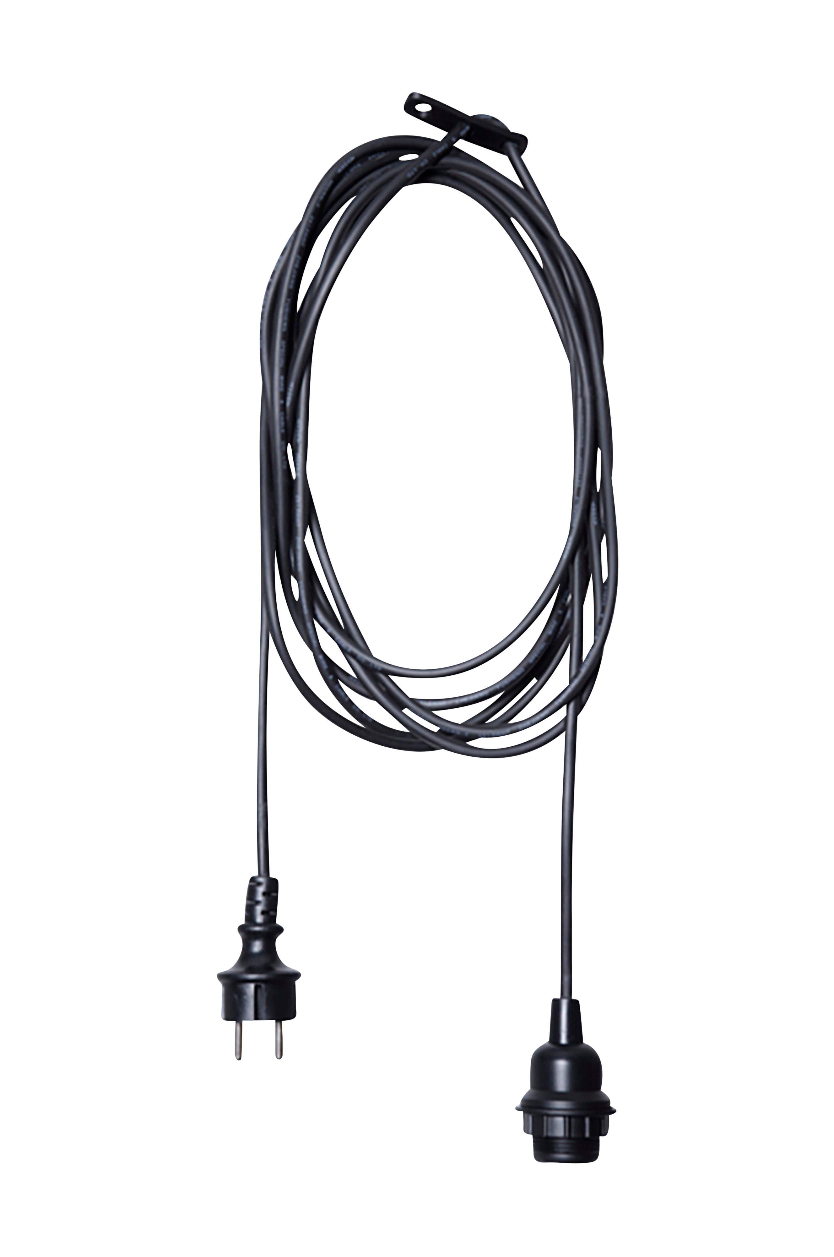 Ripustussarja ulkokäyttöön 500 cm:n mustalla kumijohdolla. Varjostimen ja valonlähteen enimmäispaino on 2 kg tässä ripustussarjassa. Leveys 5 cm, syvyys 5 cm ja korkeus 500 cm. Lampunpidike 1 x E27. Enintään 25 W. Maadoittamaton.