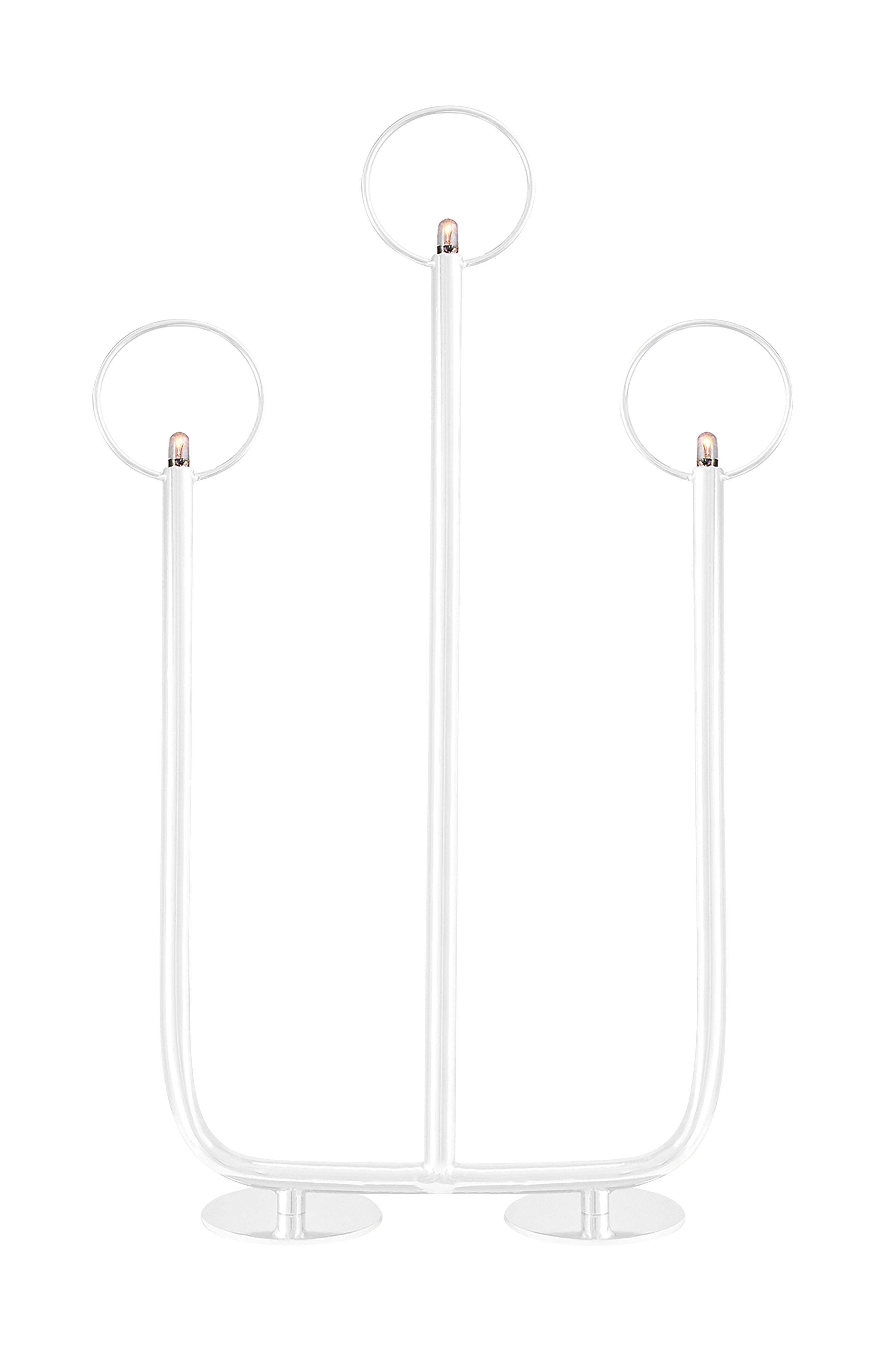 Natale-sähkökynttelikkö, jonka eri tasoilla olevat sädekehät ja sirot valonlähteet levittävät tunnelmallista ja tähtimäistä valoa. Sähkökynttelikkö sopii kauniisti ikkunalaudalle ja lipaston päälle, ja se on yhtä hieno molemmilta puolilta. Jauhemaalattua metallia. 200 cm:n pituinen johto, jossa katkaisin, muuntaja ja pistoke. Mukana toimitetaan valonlähteet. Suunnittelija: Patrick Hall. Leveys 30 cm, korkeus 50 cm ja syvyys 8 cm. Lampunpidike: 3 x E10, 3 W.