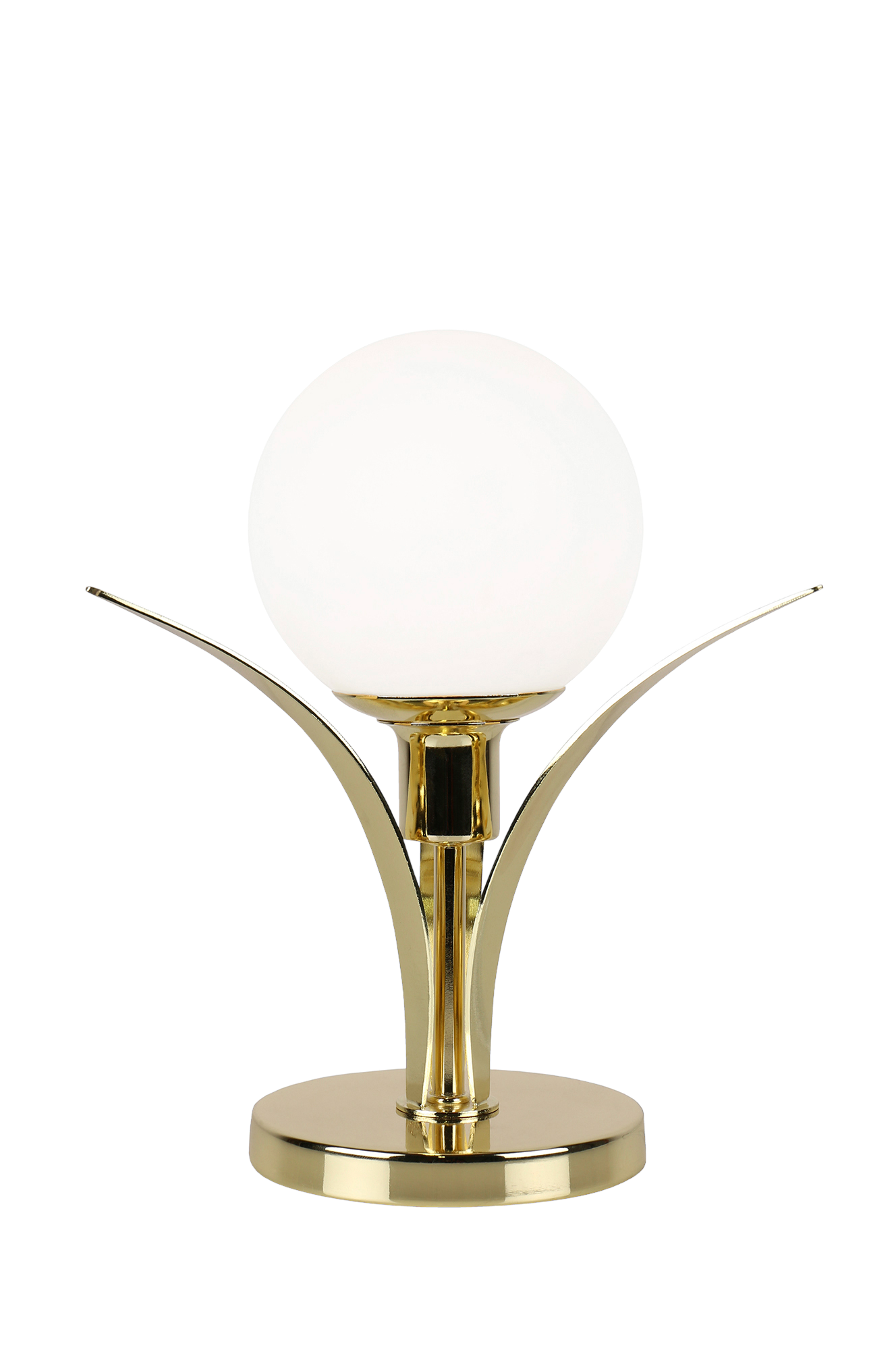 Savoy-pöytävalaisin, jossa kolme taivutettua lehteä, joiden keskellä pyöreä kupu opaalilasia. Läpikuultava johto, jossa katkaisin. Korkeus 30 cm, halkaisija 20 cm.