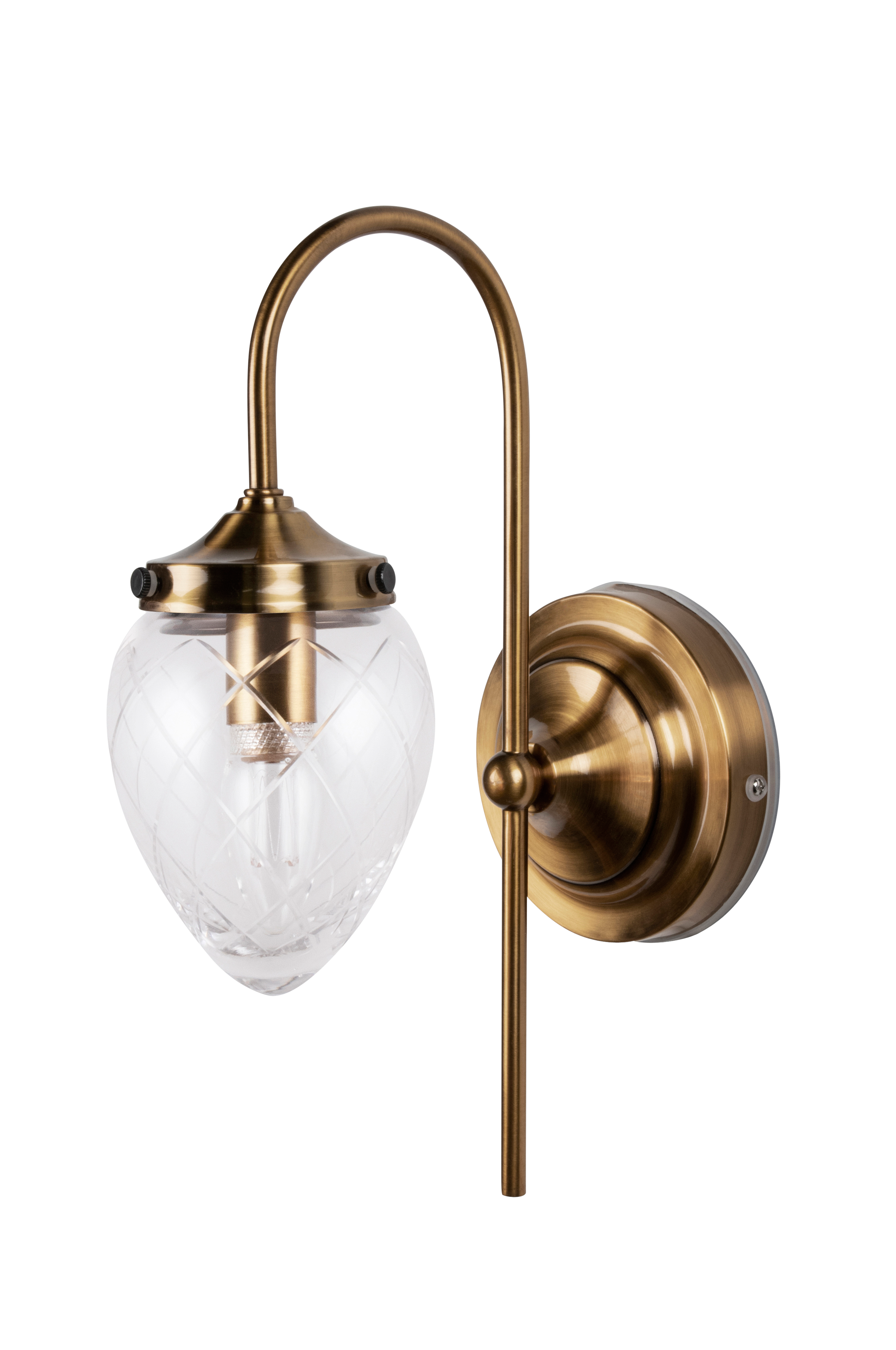 Juni-valaisin vie kauniin hiotun lasikupunsa ja harjattujen messinkiyksityiskohtiensa myötä ajatukset varhaiseen 1900-lukuun. Valaisin sopii IP44-luokituksensa ansiosta erinomaisesti kylpyhuoneeseen tai keittiöön. Kiinteään asennukseen. Suunnittelija GL Design Studio. Leveys 24 cm, syvyys 13 cm ja korkeus 33 cm. Lampunpidike 1 x E14. Enintään 40 W. Valonlähde ei sisälly toimitukseen.