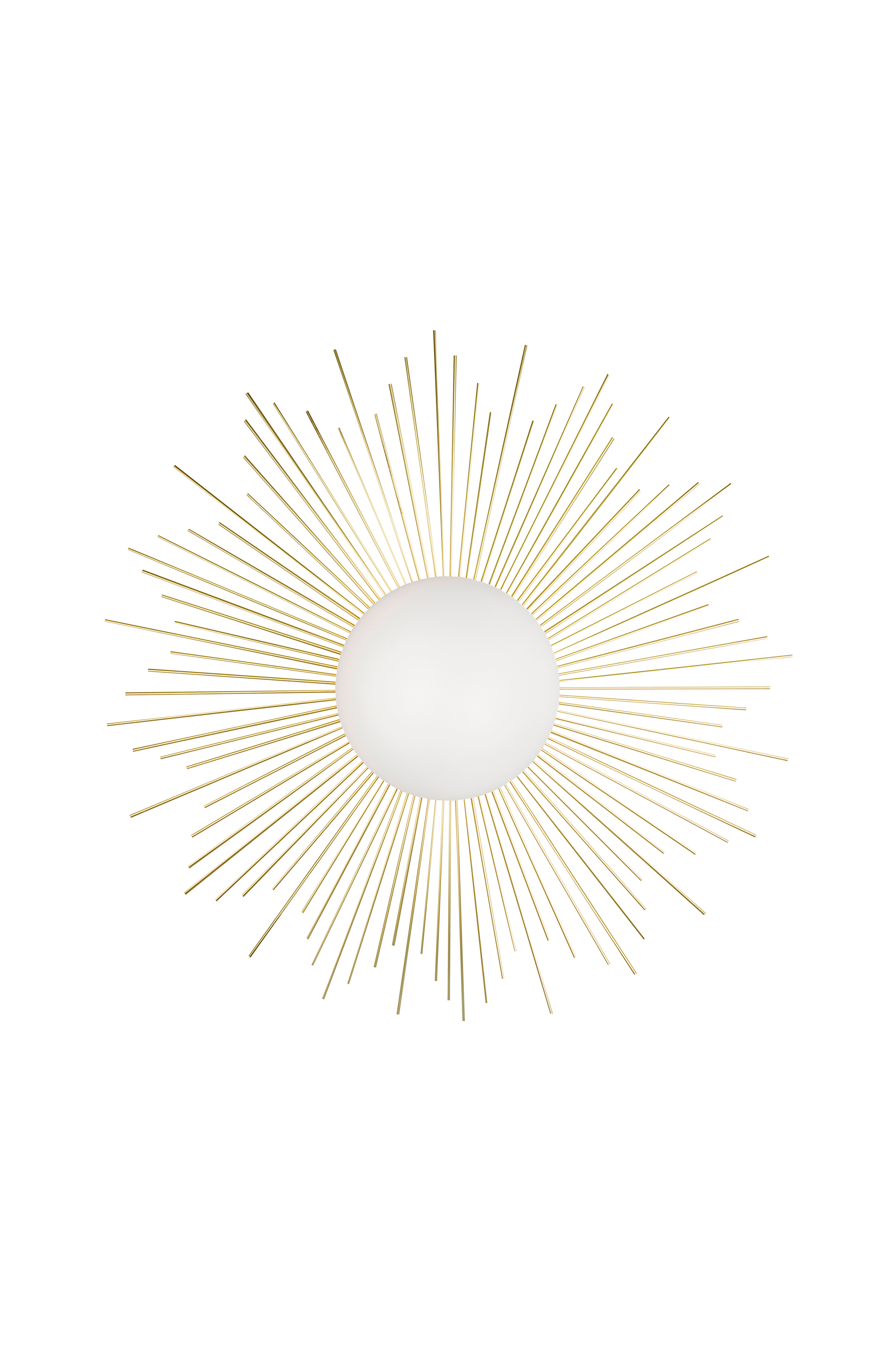 Soleil on aurinkopeilien ja Ludvig XIV:n hovin inspiroima. Tämä valaisin on harjattua metallia ja lasia, ja sitä voi käyttää sekä seinävalaisimena mukana toimitettavan läpinäkyvän, 200 cm:n pituisen johdon avulla että plafondina katossa. Ø 56 cm, syvyys 11 cm. Lampunkanta G9. Enintään 28 W. Valonlähde ei mukana.