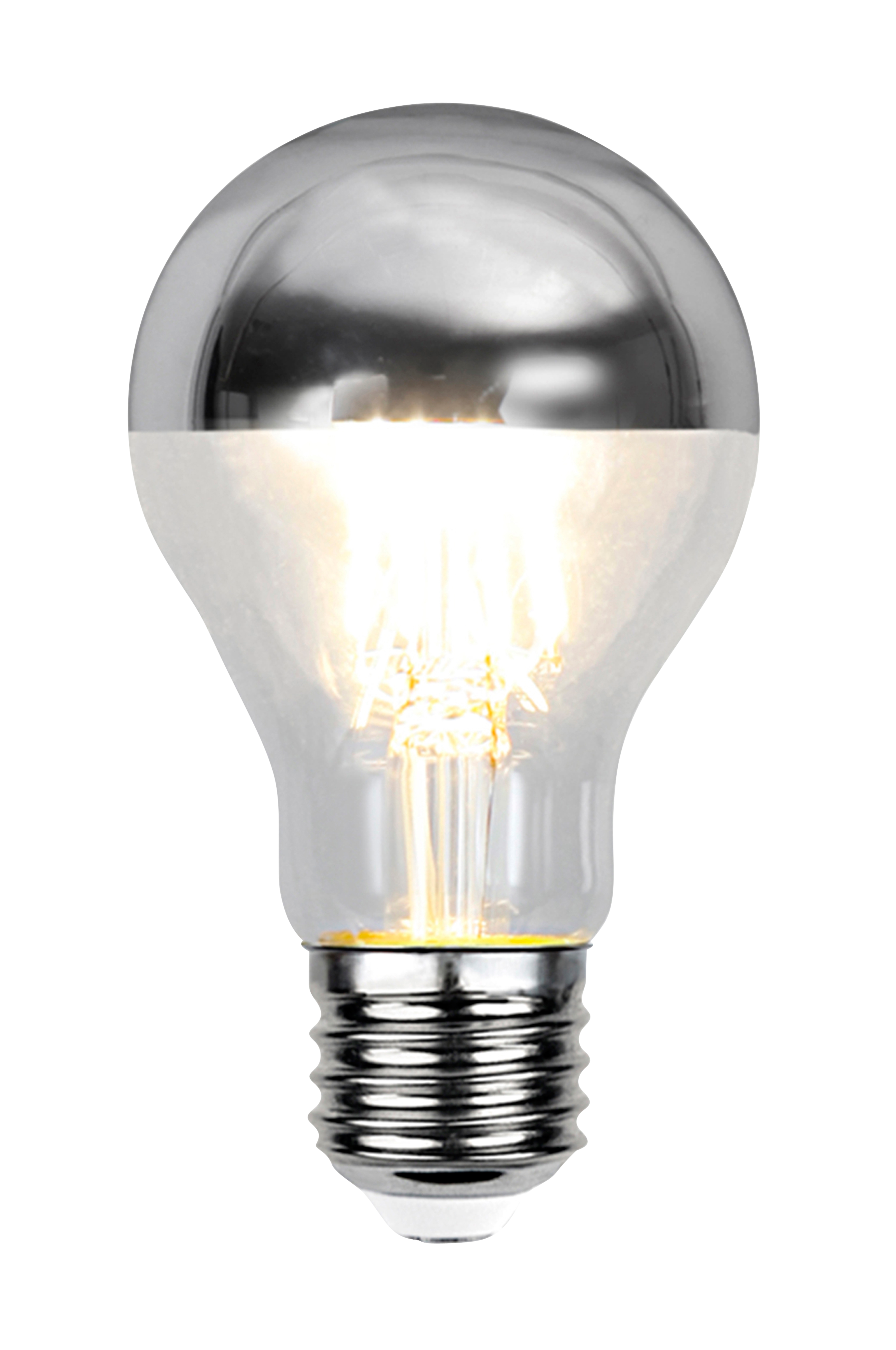 LED-valonlähde E27. Himmennettävä. Enintään 4 W (2700 K, 350lm). Valonlähteen kärkipeili heijastaa valon takaisin valaisimeen ja levittää siten valoa epäsuorasti. Valonlähde antaa lämpimän valkoista valoa. CE-merkitty. Muoto: Normaali. Leveys 6 cm ja korkeus 10,8 cm. Käyttöikä 15 000 h. Materiaali: Lasia.