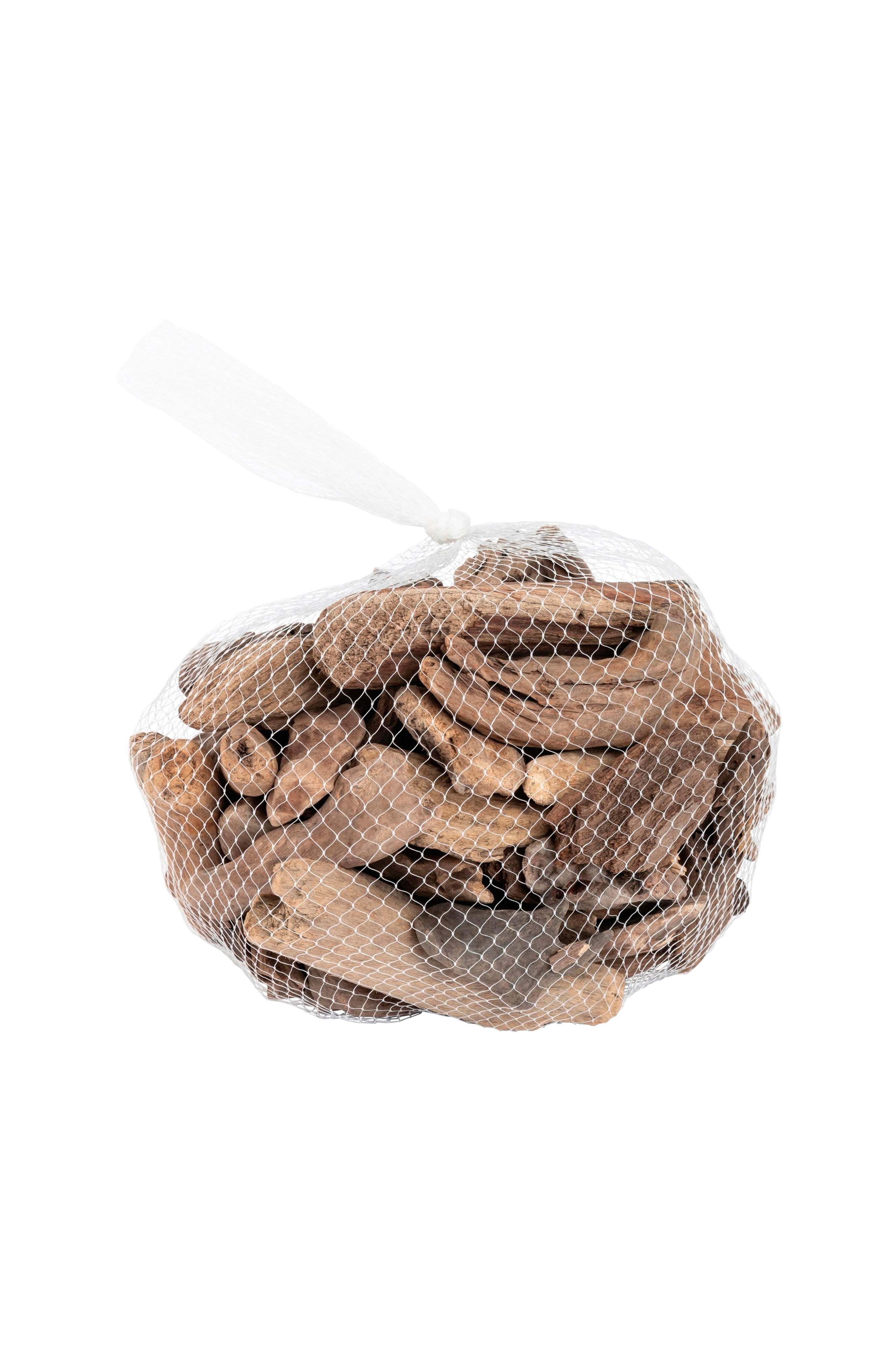 Koristele pienillä mangopuun paloilla lyhdyissä, tarjottimilla tai pöydällä luodaksesi luonnollisen ja kodikkaan tunnelman. Verkkopussi, jossa on irrallisia mangopuun paloja koristeluun. Luonnollinen väri ja koko on b17xl17 cm.