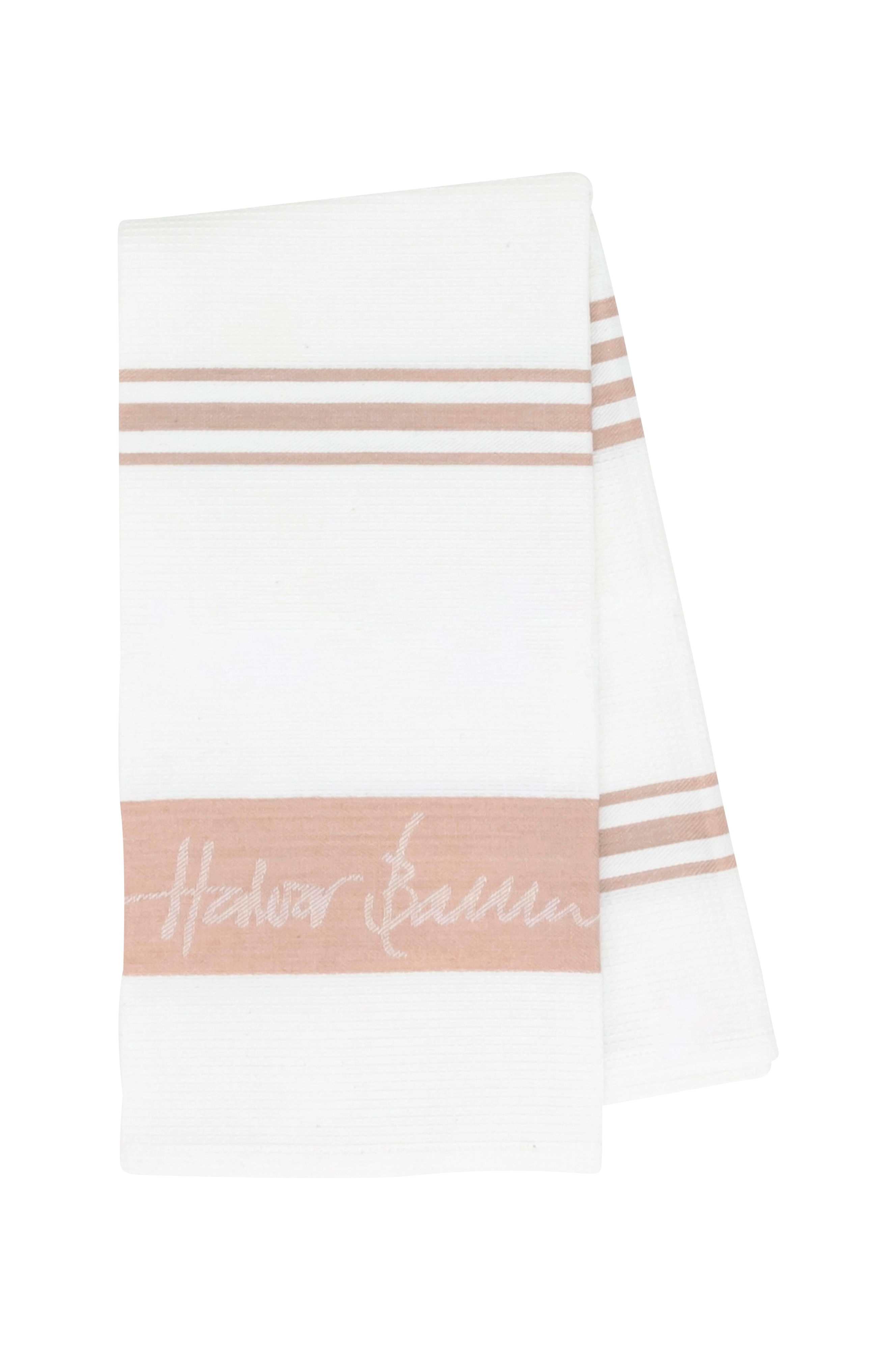 Puuvillainen keittiöpyyhe, jossa on klassinen raidallinen kuvio valkoisella pohjalla ja halvor bakke -logo alareunassa. Täydellinen asuste tyylikkäälle kokille. Loistava emäntälahja tai miehelle, jolla on kaikkea. Koko: 90 x 90 cm. Valmistettu 100 % puuvillasta ja toimitetaan tyylikkäässä lahjapakkauksessa. Saatavana useissa eri väreissä