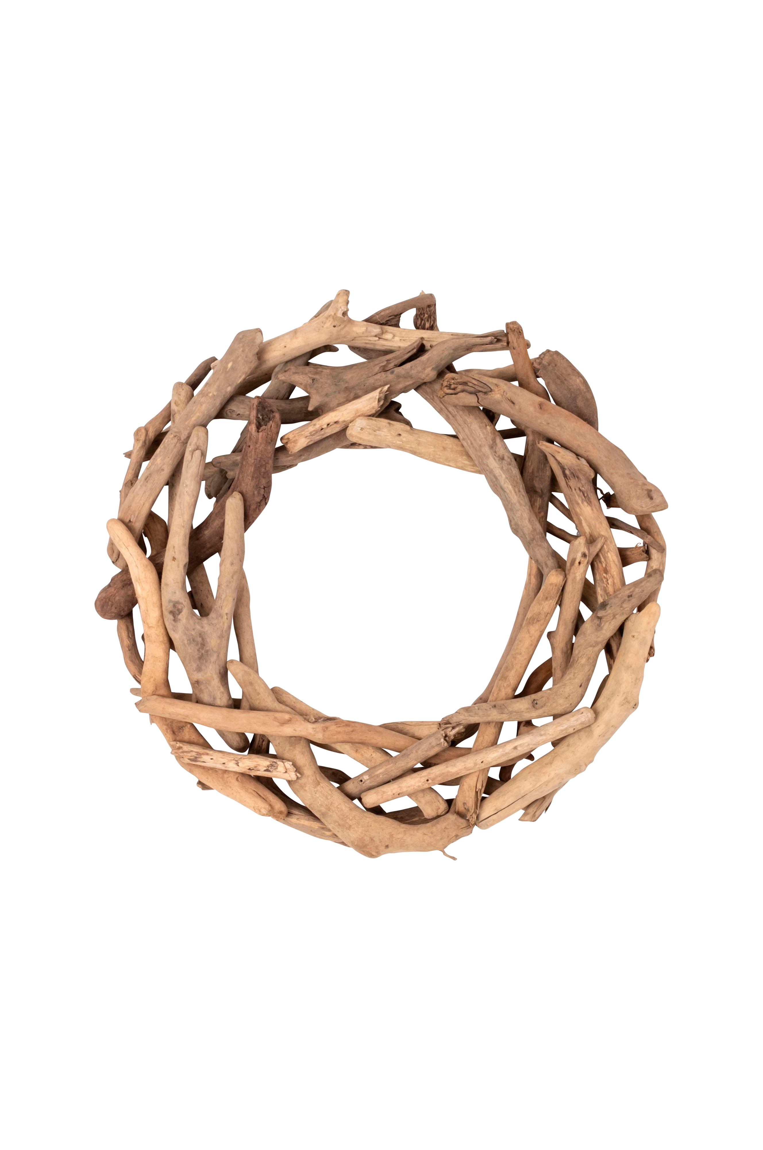 Tämä seppele on käsityönä valmistettu monista pienistä mangopuun paloista, jotka luonto on muotoillut ja tasoittanut. Jokaisella seppeleellä on ainutlaatuinen ulkonäkö, mikä tekee siitä kauniin seinäkoristeen, joka tasapainoilee luonnollisen ja strukturoidun välillä.