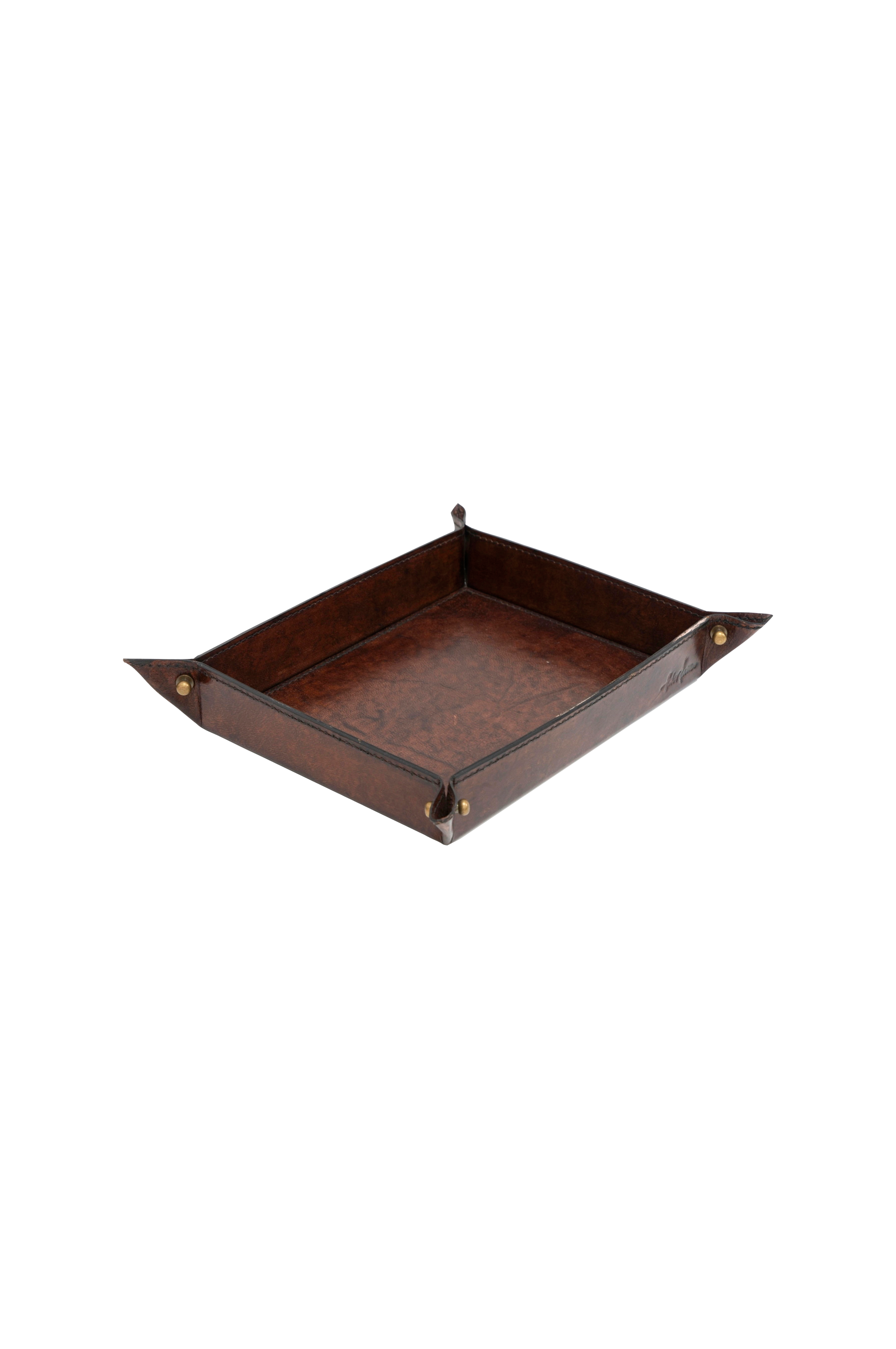 Tässä tyylikkäässä nahkatarjottimessa, jossa on taitetut kulmat, yhdistyvät toiminnallisuus ja tyyli, mikä tekee siitä täydellisen lisän kotiisi. Käytä sitä avainten, korujen tai koriste-esineiden järjestämiseen ja luo hienostuneen ja siistin ilmapiirin. Luonnonnahasta valmistettu ajaton muotoilu, joka tuo tyylikkään lisän mihin tahansa huoneeseen. Valmistettu luonnollisesta nahasta,