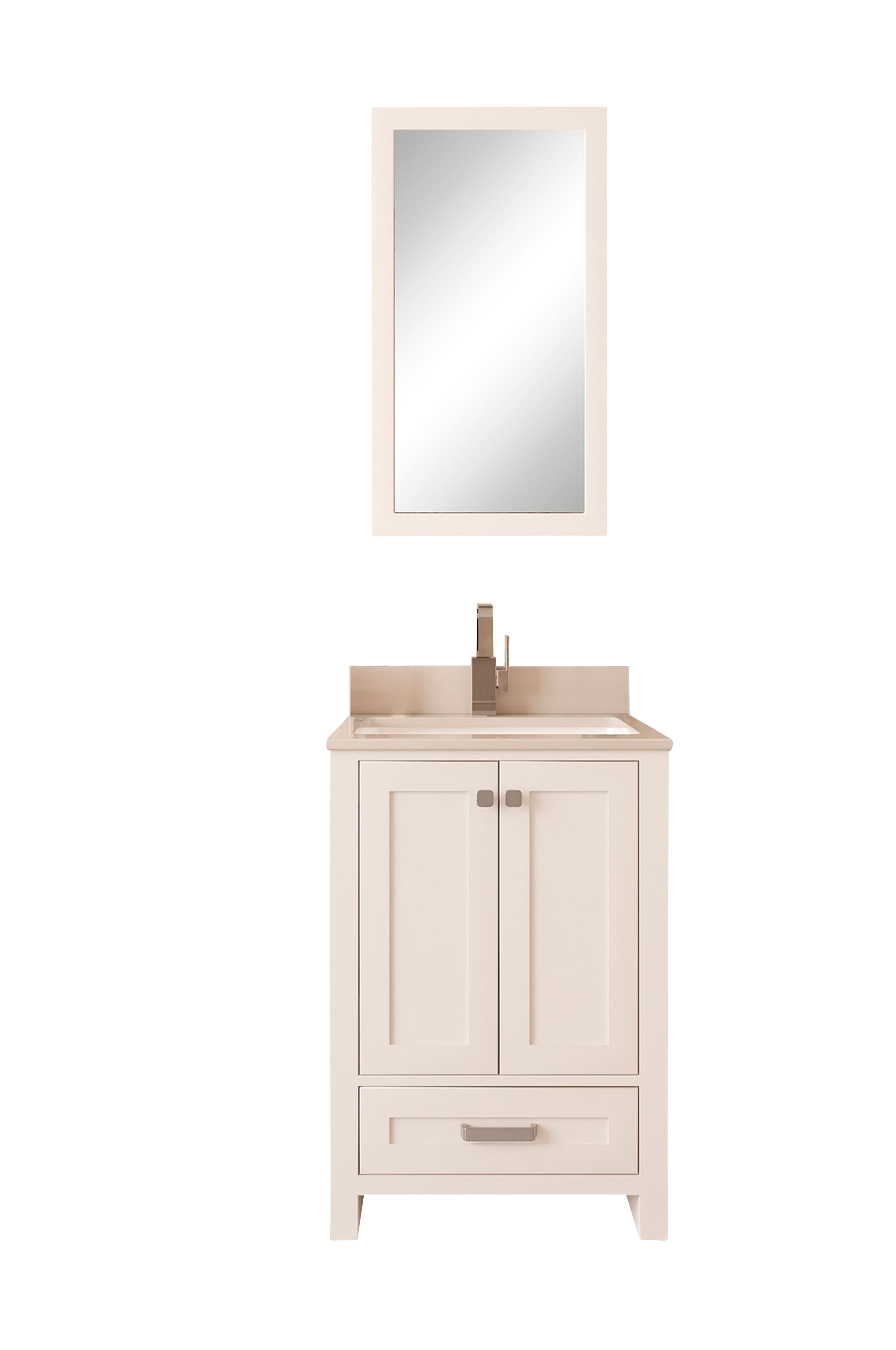100% maalattua MDF-levyä (massiivipuuta) (paksuus: 18 mm) taso: 100% valkoista kvartsia & paikalleen asennettu pesuallas posliinia