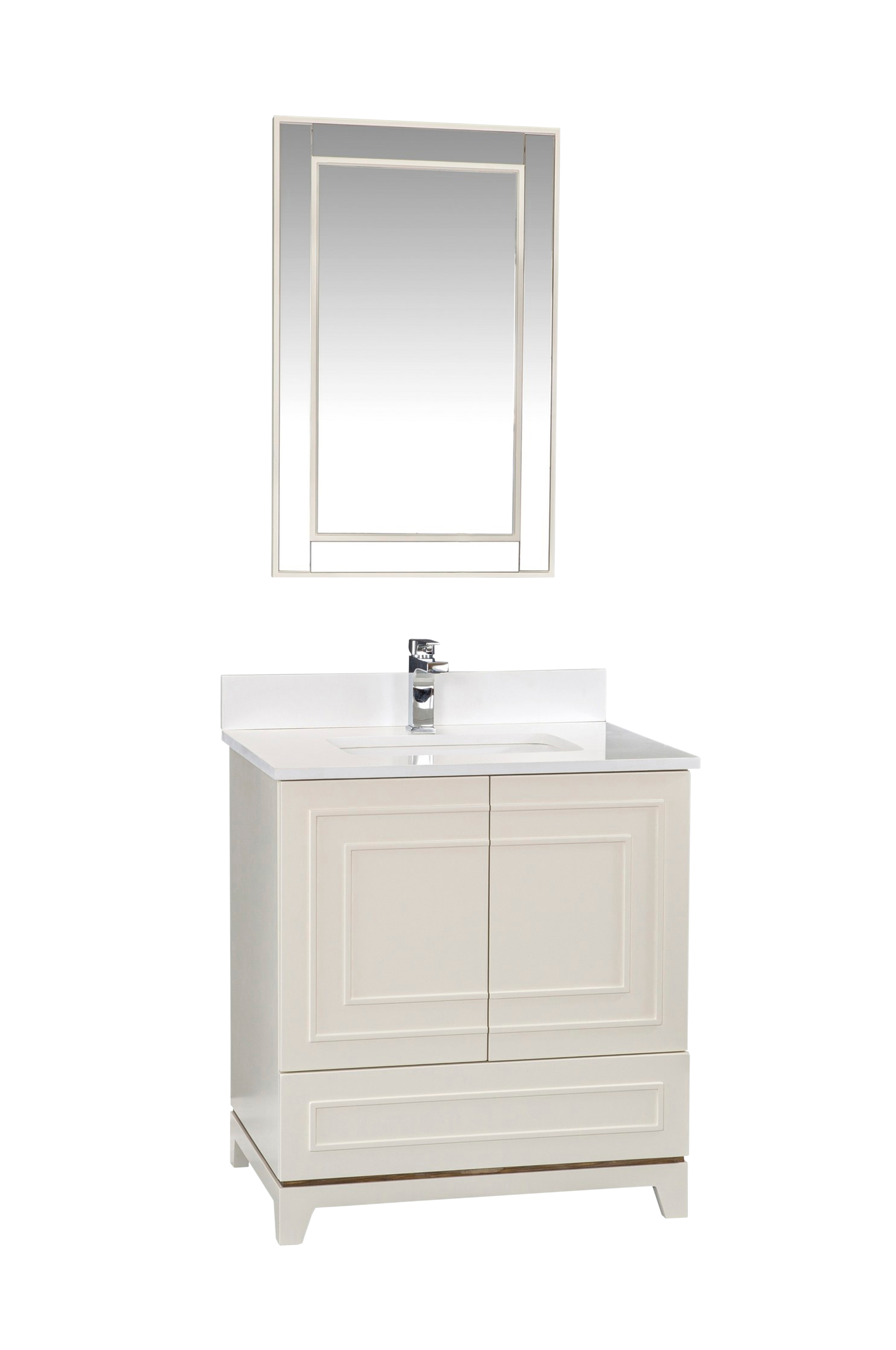 100% maalattua MDF-levyä (massiivipuuta) (paksuus: 18 mm) taso: 100% valkoista kvartsia & paikalleen asennettu pesuallas posliinia