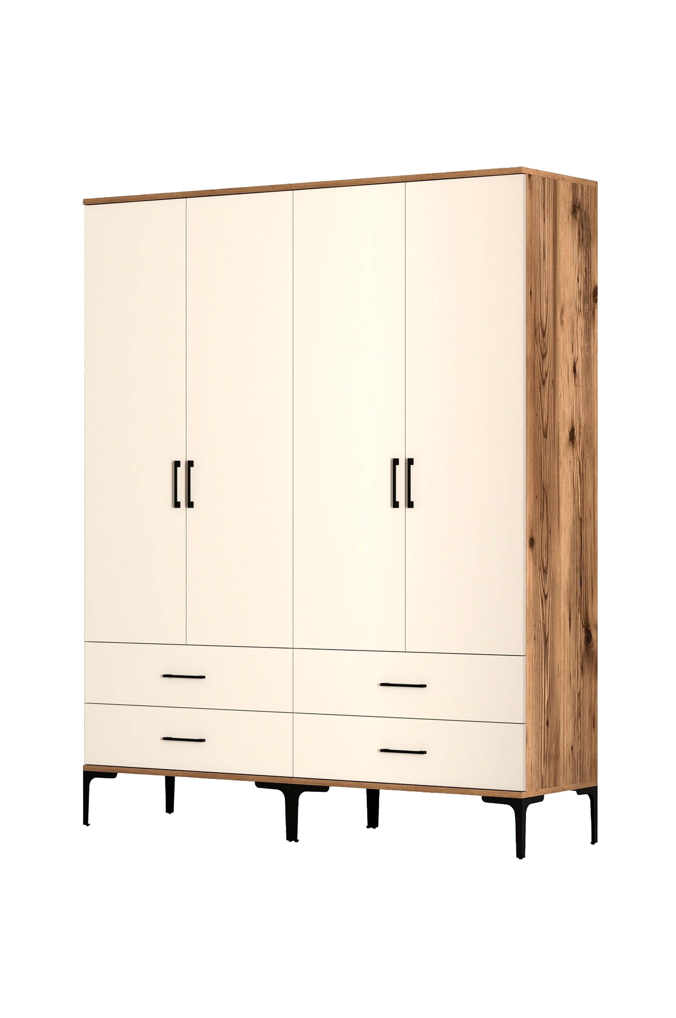 Tyylikäs ja tukeva vaatekaappi. Valitettavasti ruuvinkannat ovat hieman liian ulkonevat, mikä aiheuttaa laatikoiden juuttumisen kiskoihin.