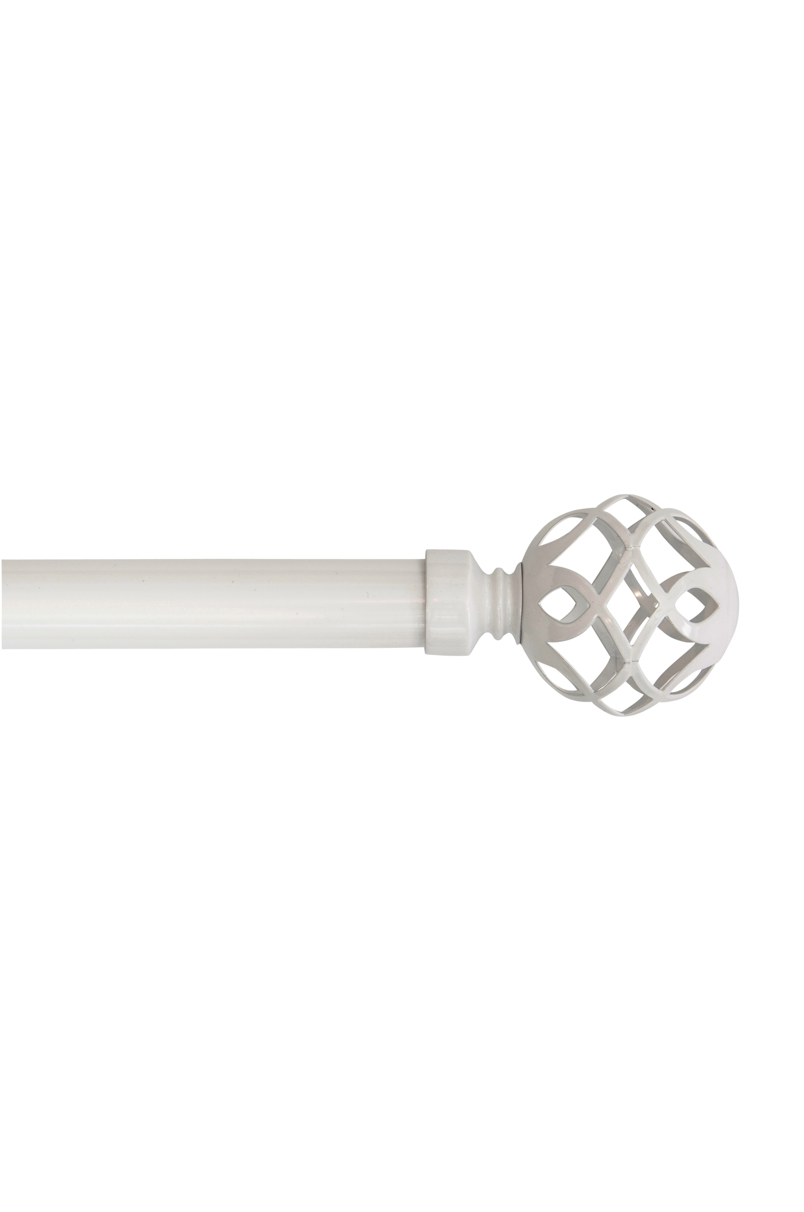 Täydellinen koristeellinen verhotankosetti metallia, 25/28 mm. Setti sisältää säädettävät tangot 130-240 cm, 2 päätynuppia ja 3 säädettävää seinäkiinnikettä (9-13 cm).
