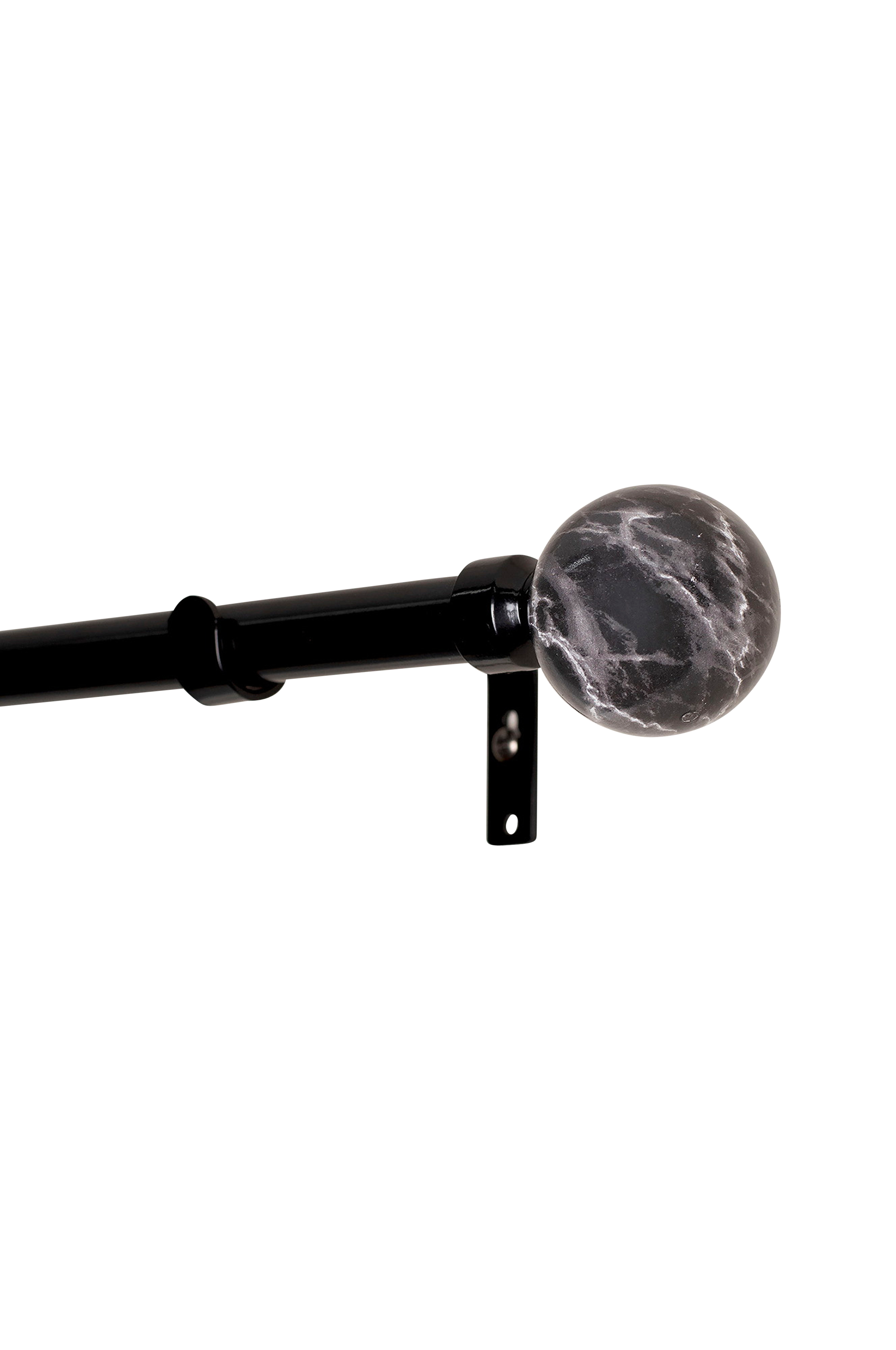 Täydellinen metallinen verhotanko (16/19 mm), jossa on pallomaiset marmoripäätteet. Setti sisältää säädettävät tangot (110-200 cm), 2 koroketta ja 3 säädettävää seinätukea (7-9 cm).