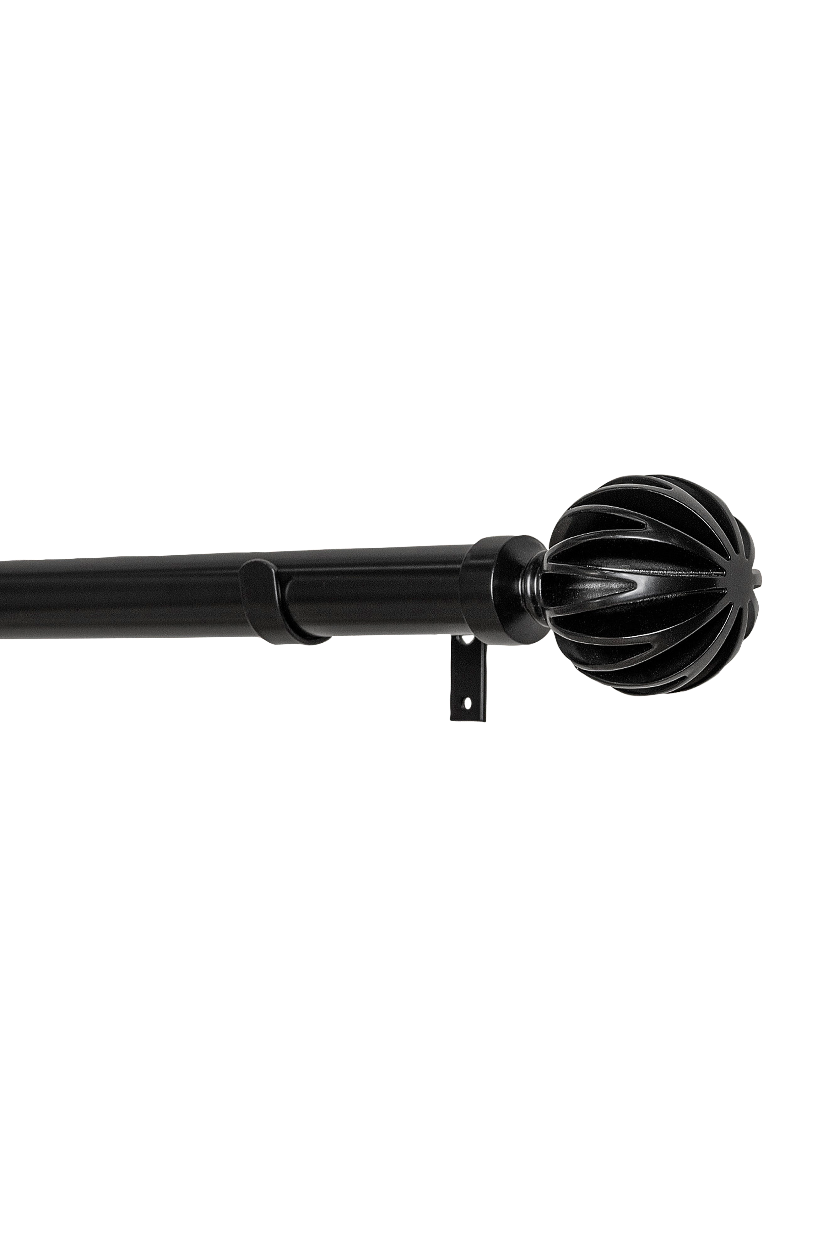 Täydellinen metallinen verhotanko (25/28 mm), jossa on koristeelliset koristepäätteet. Setti sisältää säädettävät tangot (110-200 cm), 2 koroketta ja 3 säädettävää seinäkannattimen (7-9 cm).