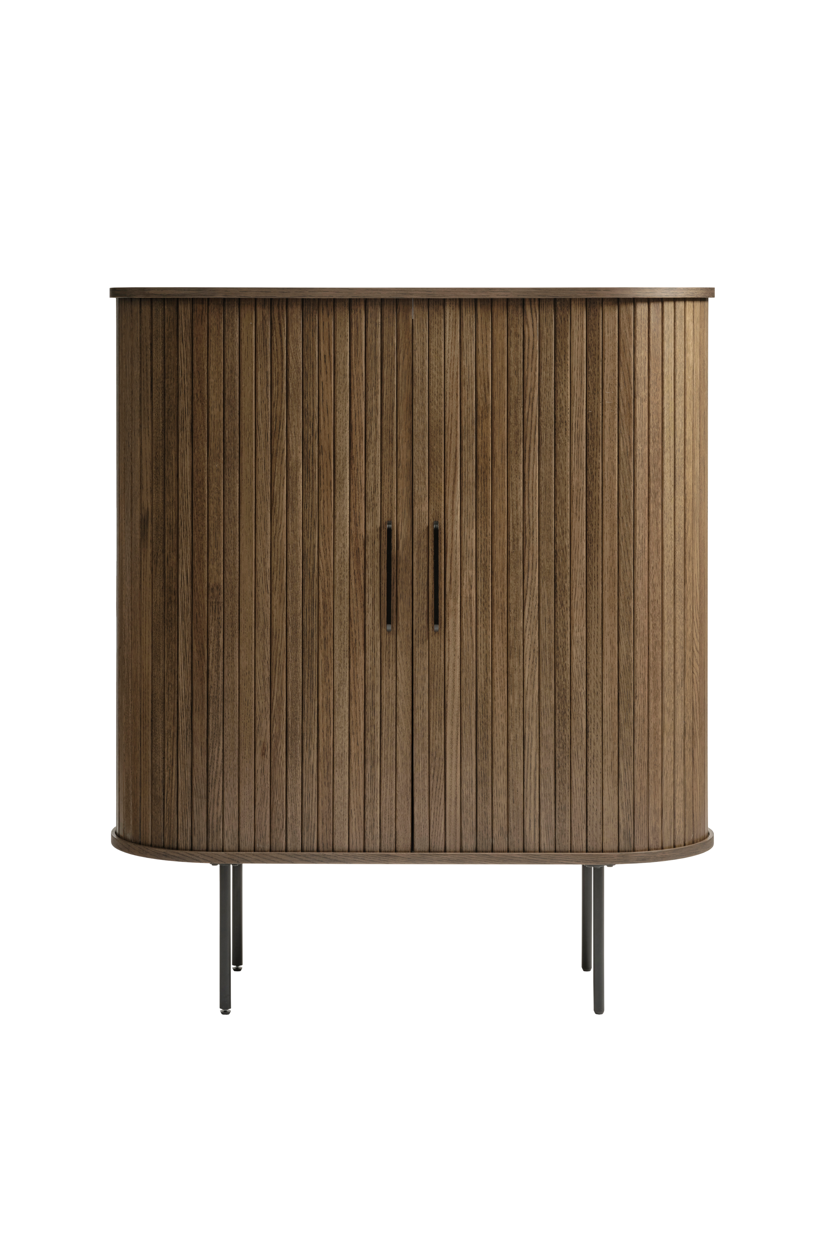 Tammiviilu, teollisen tyyliset mustat metalliosat ja orgaaniset pyöreät kulmat tekevät Rondo-kalusteiden yleisilmeestä viehättävän keveän.