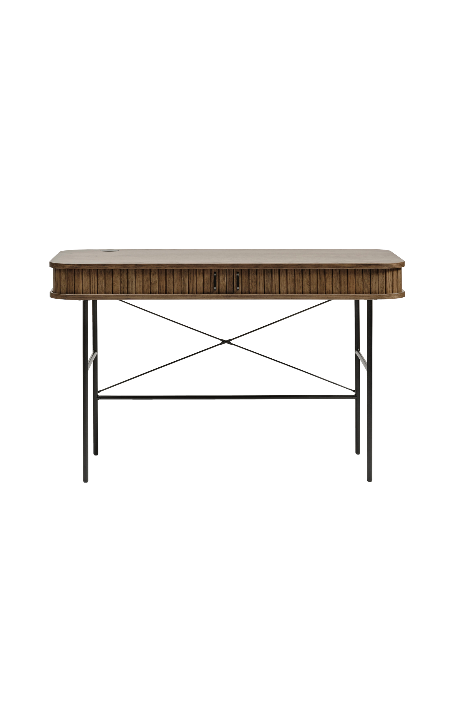 Tässä desk -tuolissa on puupinnoite, jossa on uurrettuja yksityiskohtia ja ohuet mustat metallijalat, jotka yhdistävät eleganssia ja modernia minimalismia. Sen kompakti muotoilu ja käytännölliset laatikot tekevät siitä tyylikkään ja toimivan valinnan kotitoimistoon tai luoviin tiloihin.
