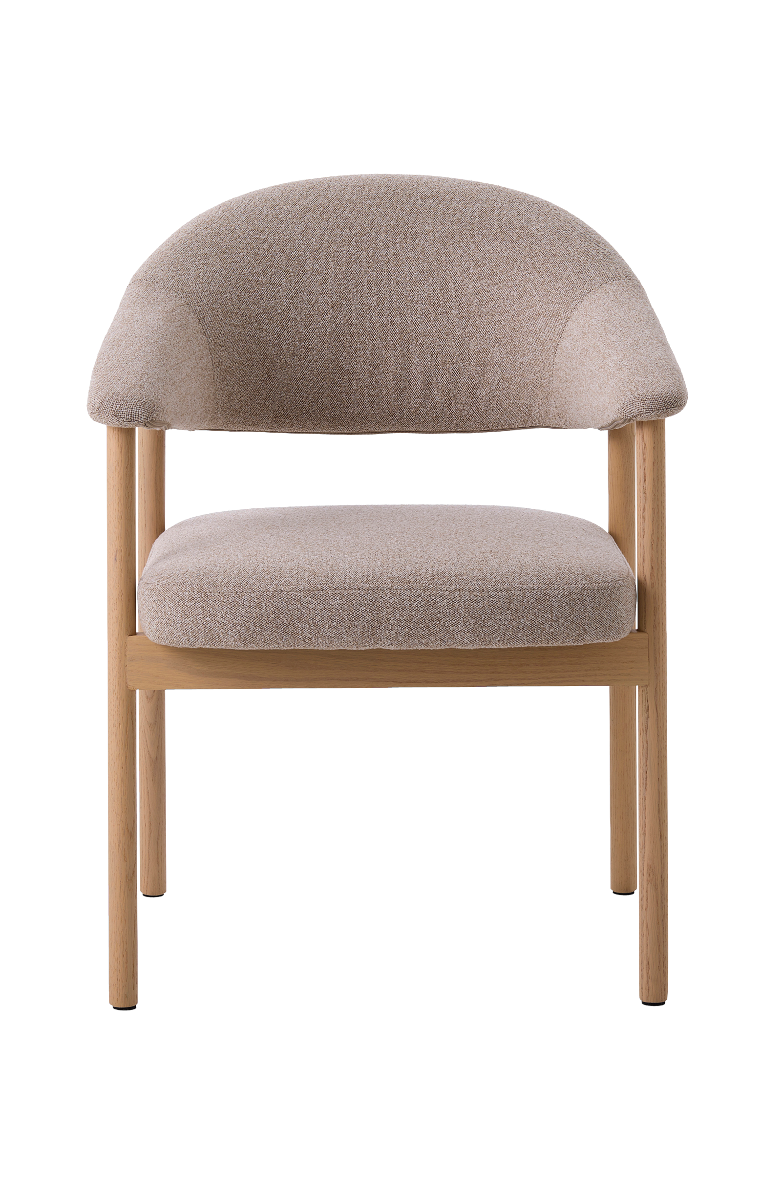 Tyylikäs ruokailutuoli, jossa on tyylikäs, skandinaavinen muotoilu. Valmistettu massiivisesta tammirungosta ja pehmeästä, kestävästä kangasverhoilusta. Kaareva selkänoja ja pehmustettu istuin takaavat erinomaisen mukavuuden - täydellinen ruokailuhuoneisiin, kotitoimistoihin tai oleskelutiloihin.