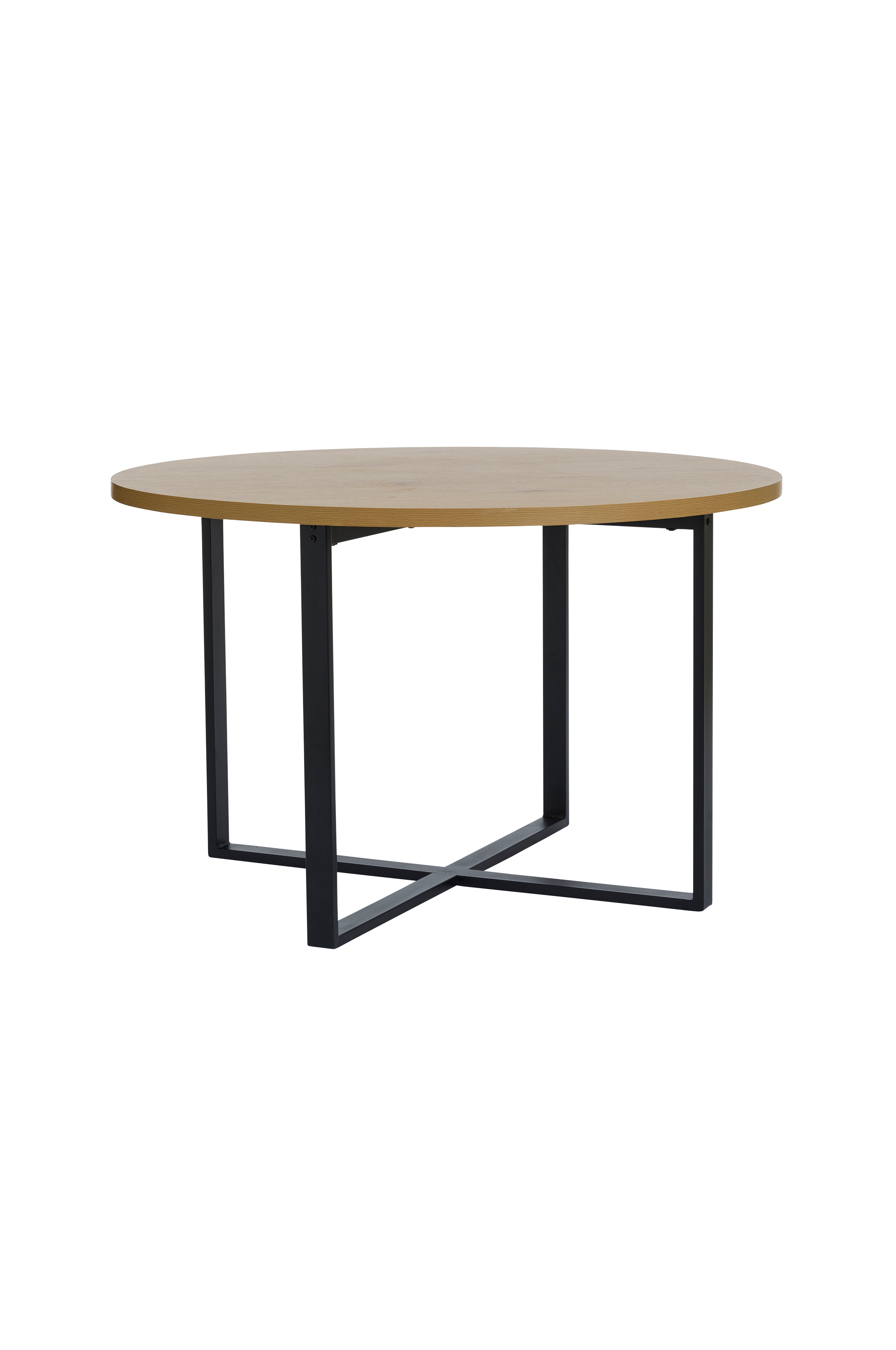 Tässä pyöreässä ruokapöydässä yhdistyvät luonnollinen puinen pöytälevy ja tyylikäs musta metallijalusta, mikä luo nykyaikaisen ilmeen. Minimalistinen muotoilu on sekä tyylikäs että toimiva, ja se tarjoaa runsaasti tilaa ruokailuun ja keskusteluun. Täydellinen pienempiin tiloihin tai ruokailutilan keskipisteeksi.