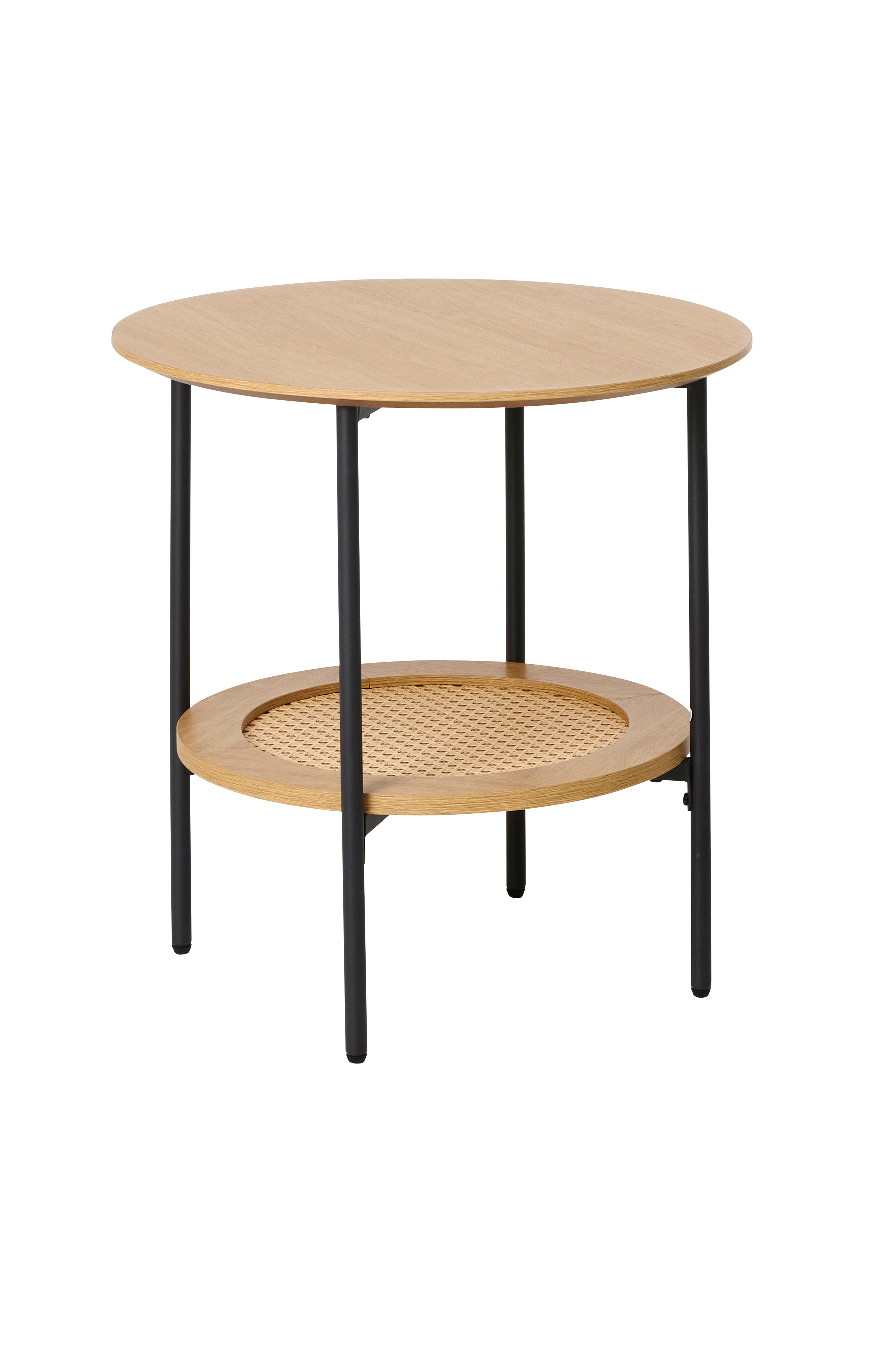 Tässä pyöreässä side table on tyylikäs muotoilu, jossa on ohuet metallijalat ja käytännöllinen alahylly lisäsäilytystä varten. Sen minimalistinen ja moderni tyyli tekee siitä monipuolisen koriste-esineen olohuoneisiin, makuuhuoneisiin tai kodikkaisiin nurkkiin.