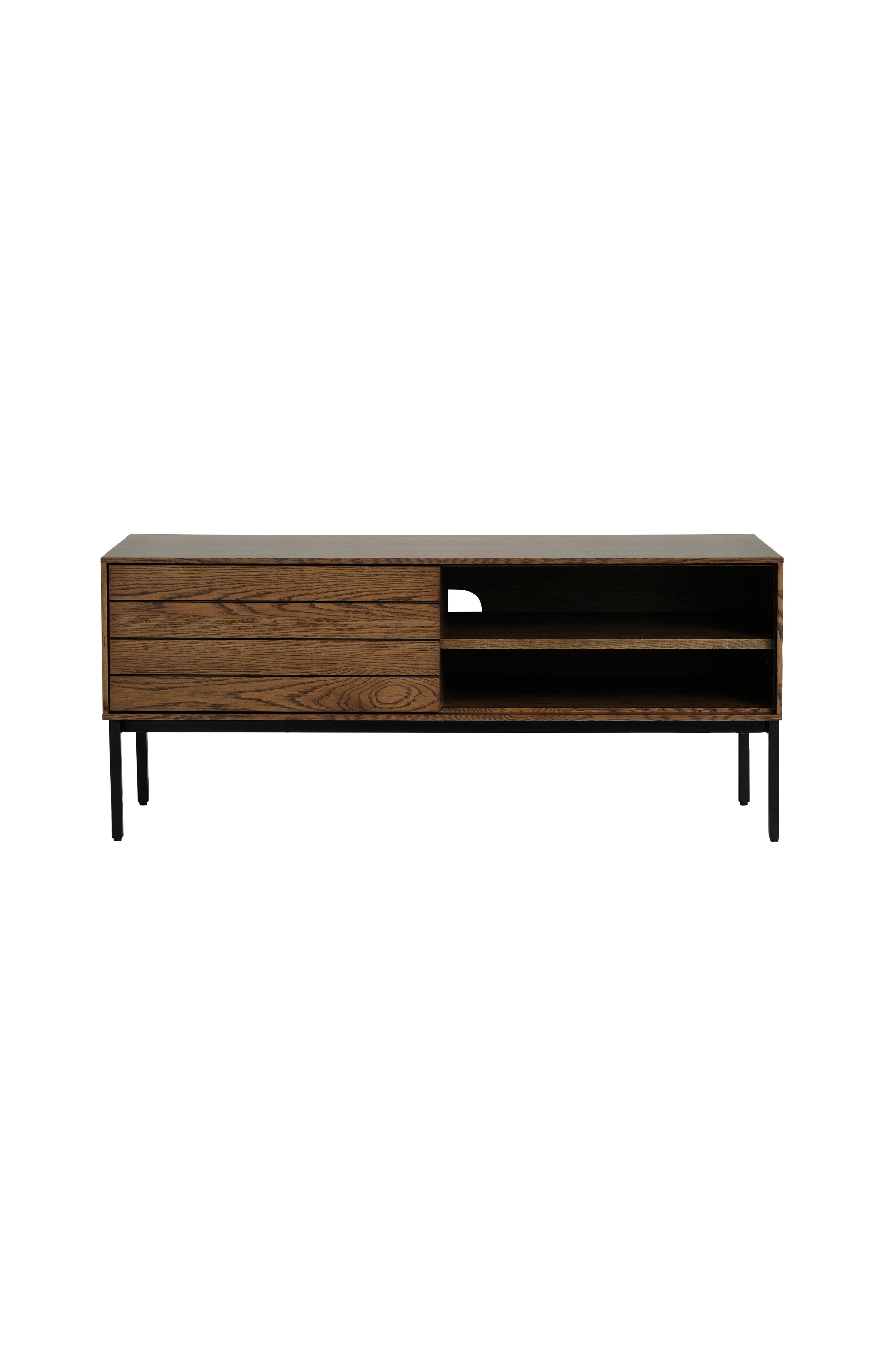 Lämpimän ja savuisen sävyinen tammi ja veistetyt, vaakasuorat linjat ja teollishenkinen musta metalli antavat Modica-sarjalle kevyen ilmeen, jota laatikoiden ja ovien kätevä paina-ja-avaa-mekanismi korostaa entisestään.