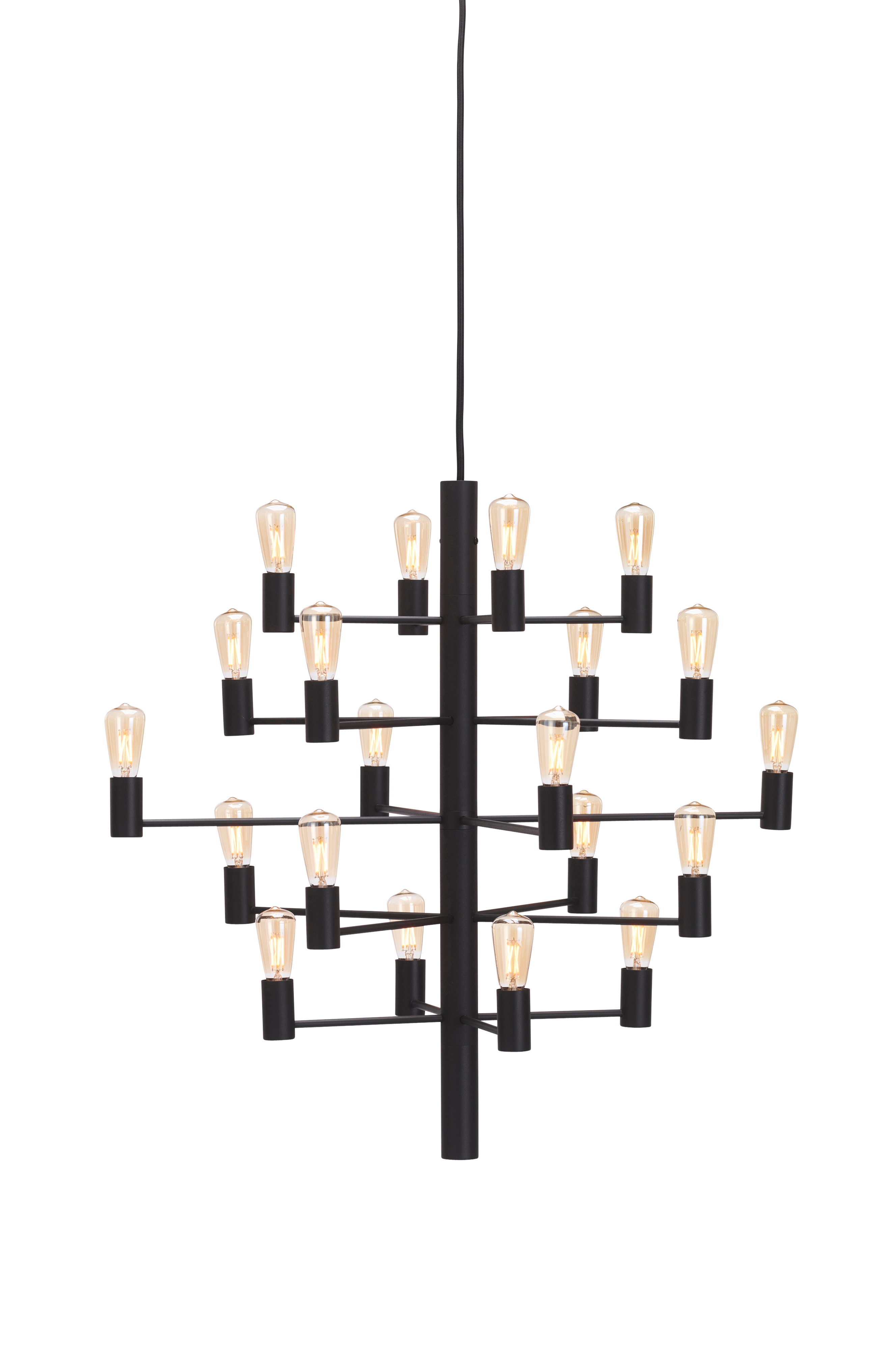 Manola on tyylikäs 20-haarainen kattokruunu. Valaisin luo taianomaista tunnelmaa eteisessä tai ruokapöydän yläpuolella. Valonlähteet mukana. Lampunkanta E14. 2400 kelvin, 170 lumen. Mukana toimitettavan valonlähteen energialuokka E. 2,5 wattia. IP20. Musta johto, pituus 2,5 m. Korkeus 67 cm ja halkaisija 70 cm. Asennetaan kattoon, ei koukkua. Luokka II.