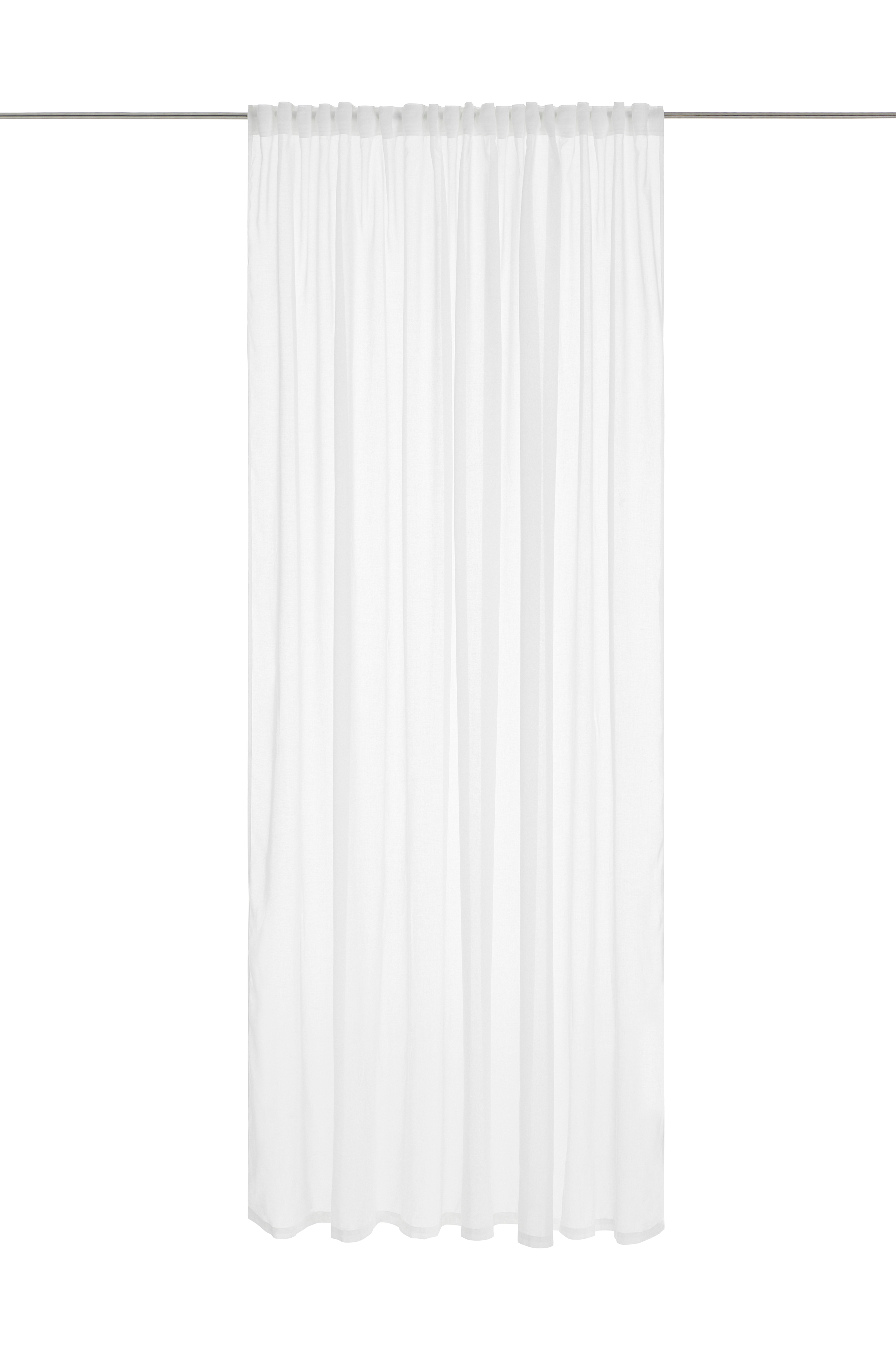 Erittäin leveä monitoimiverho pehmeää ja läpikuultavaa materiaalia kierrätetystä polyesteristä. Monitoiminauhan ansiosta verhon voi ripustaa piilolenkkien avulla suoraan verhotankoon tai käyttää ripustamiseen renkaita, neulakoukkuja tai sormikoukkuja. Poimutusnauhan nyöreillä saat helposti tasaiset ja kauniit laskokset. Myydään 1 kappaleen pakkauksessa.