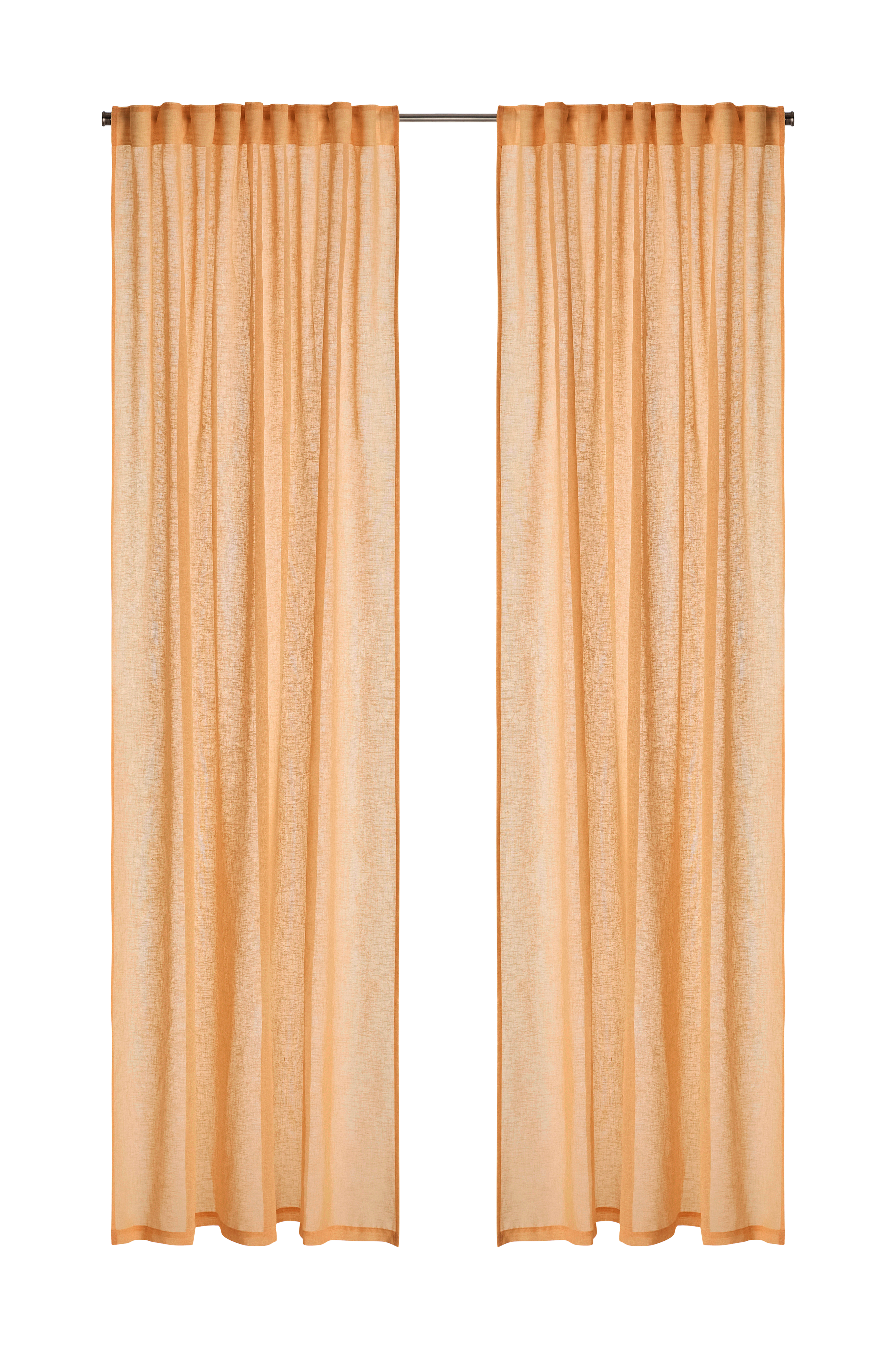 Kaksi monitoimiverhoa harvaan kudottua, pehmeää, kierrätettyä ja pellavamaista polyesteriä. Monitoiminauhan ansiosta verhot voidaan ripustaa piilolenkkien avulla suoraan verhotankoon tai käyttää ripustamiseen renkaita, neulakoukkuja tai sormikoukkuja. Poimutusnauhan nyöreillä saat helposti tasaiset ja kauniit laskokset.