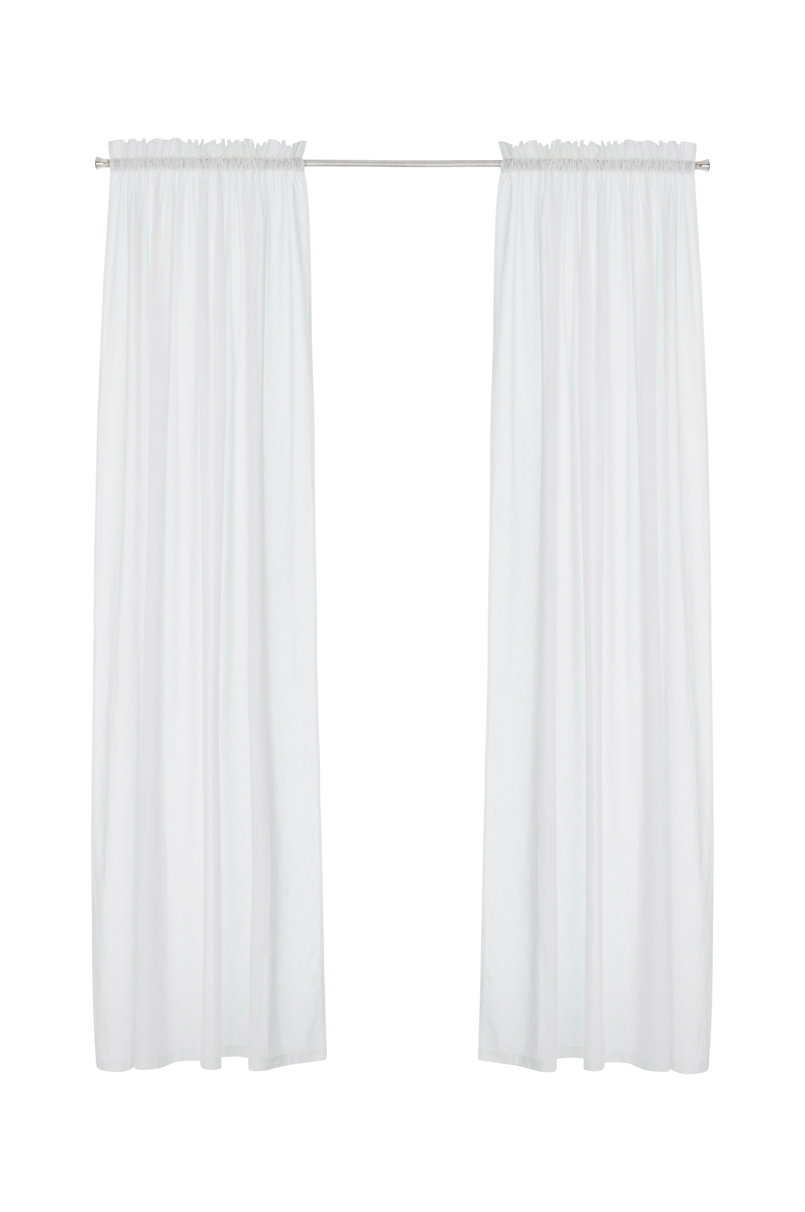 Kaksi sivuverhoa läpikuultavaa puuvillavoileeta. Ommeltu kuja ylhäällä. Leveys 145 cm. Kolme pituutta: 160, 220 ja 250 cm.