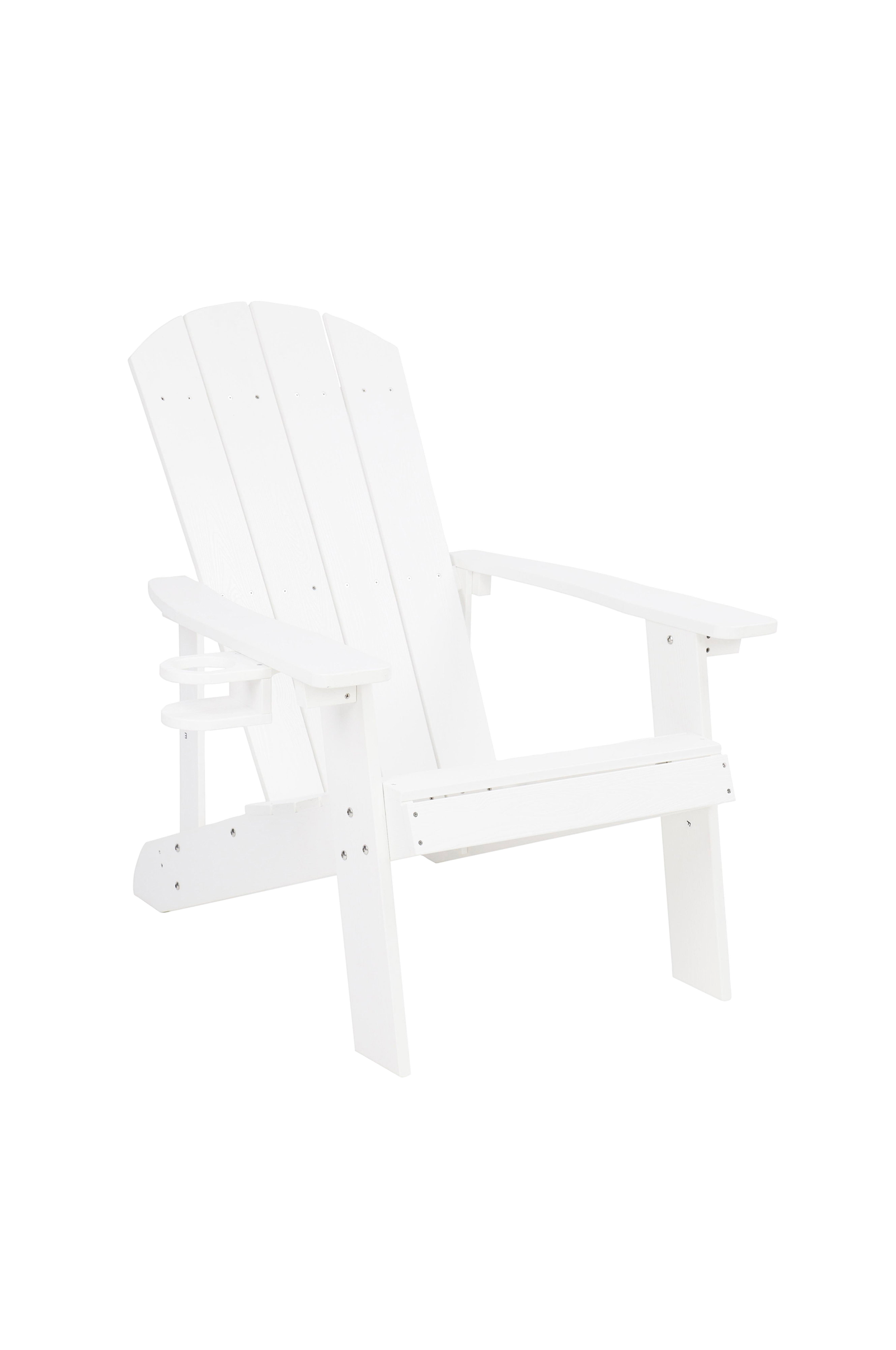 Mukava Adirondack-tuoli, jossa on harkittu ergonomia ja käytännölliset mukitelineet, suunniteltu rentouttaviin hetkiin ulkona.