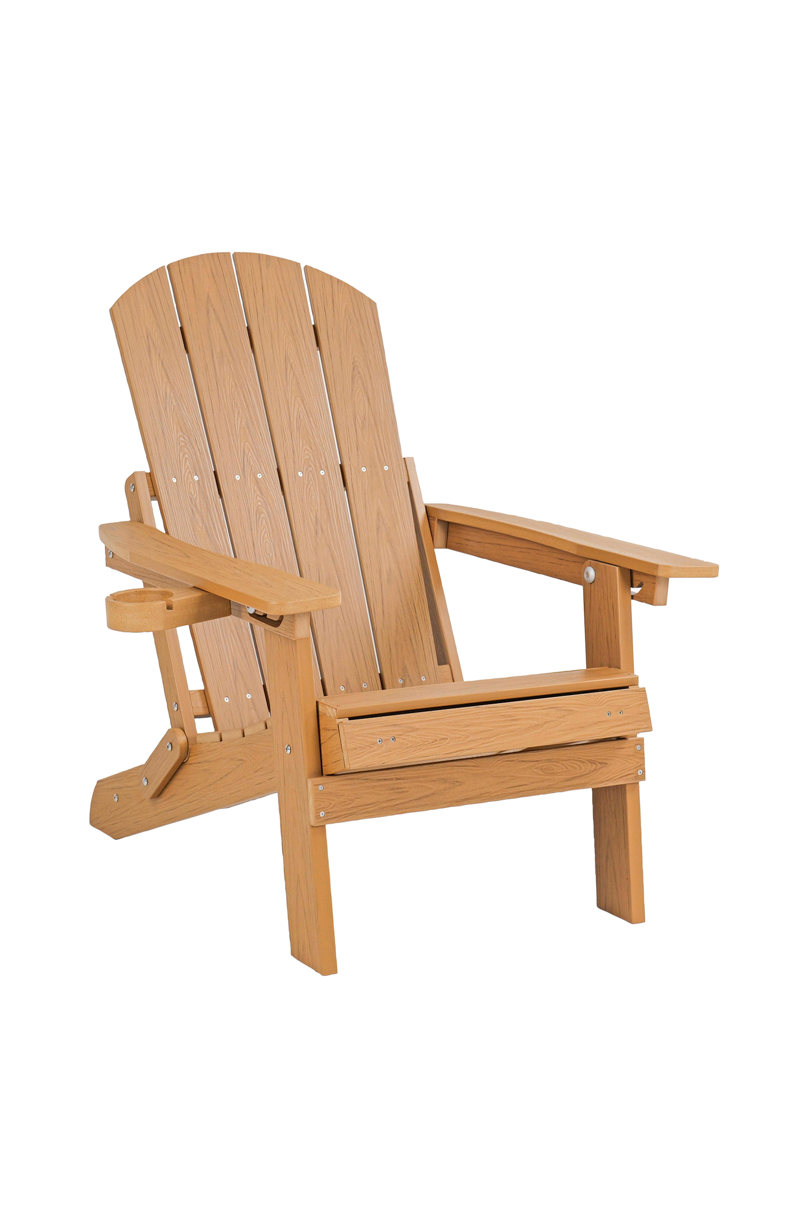 Tuolissa on ikoninen Adirondack-muotoilu, jossa on korkea, säleikköinen selkänoja, joka tarjoaa ergonomista tukea ja rennon istuinkulman. Muotoillut käsinojat tarjoavat mukavan tuen, ja pidennetty, ritilän muotoinen jalkatuki luo yhtenäisen makuutason. Tukeva puurakenne antaa vankan tuntuman ja on suunniteltu pitkäaikaiseen käyttöön.