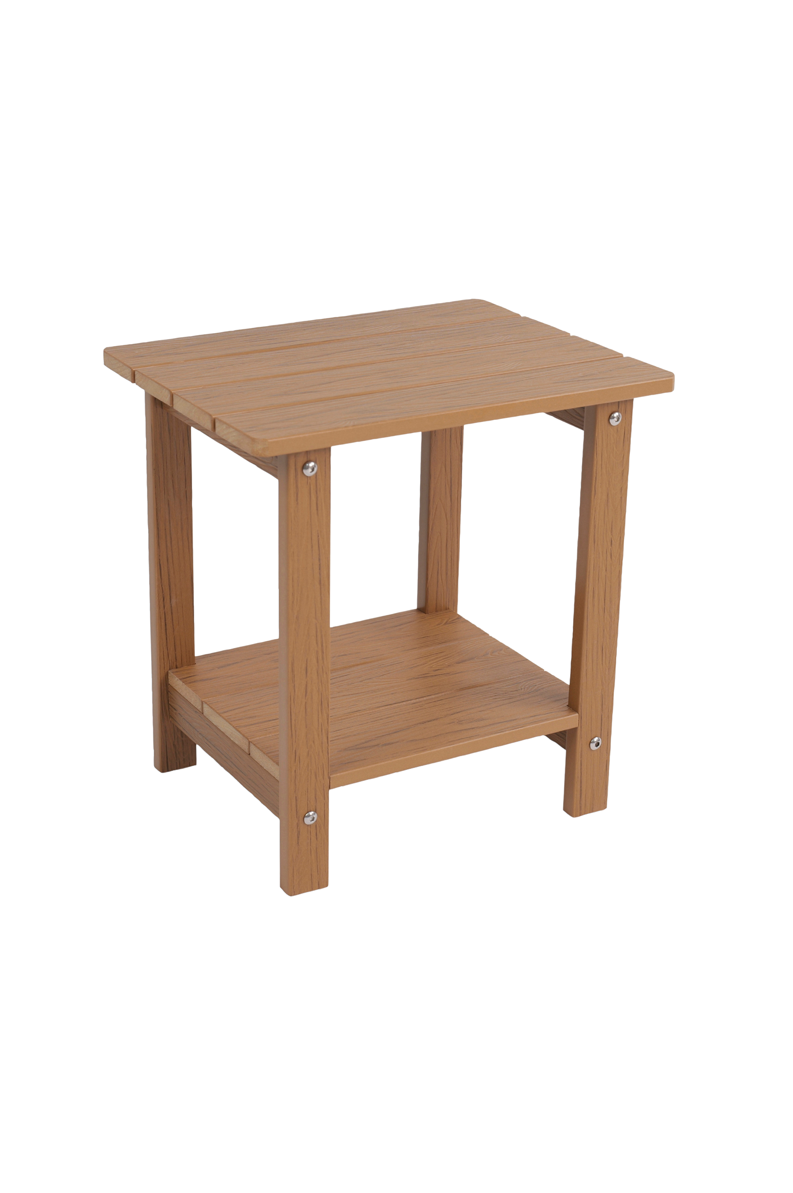 Käytännöllinen ja tyylikäs sivupöytä, jossa on tuplahyllyt, tarjoaa lisäsäilytystilaa ja sopii täydellisesti ulkokalusteisiin.