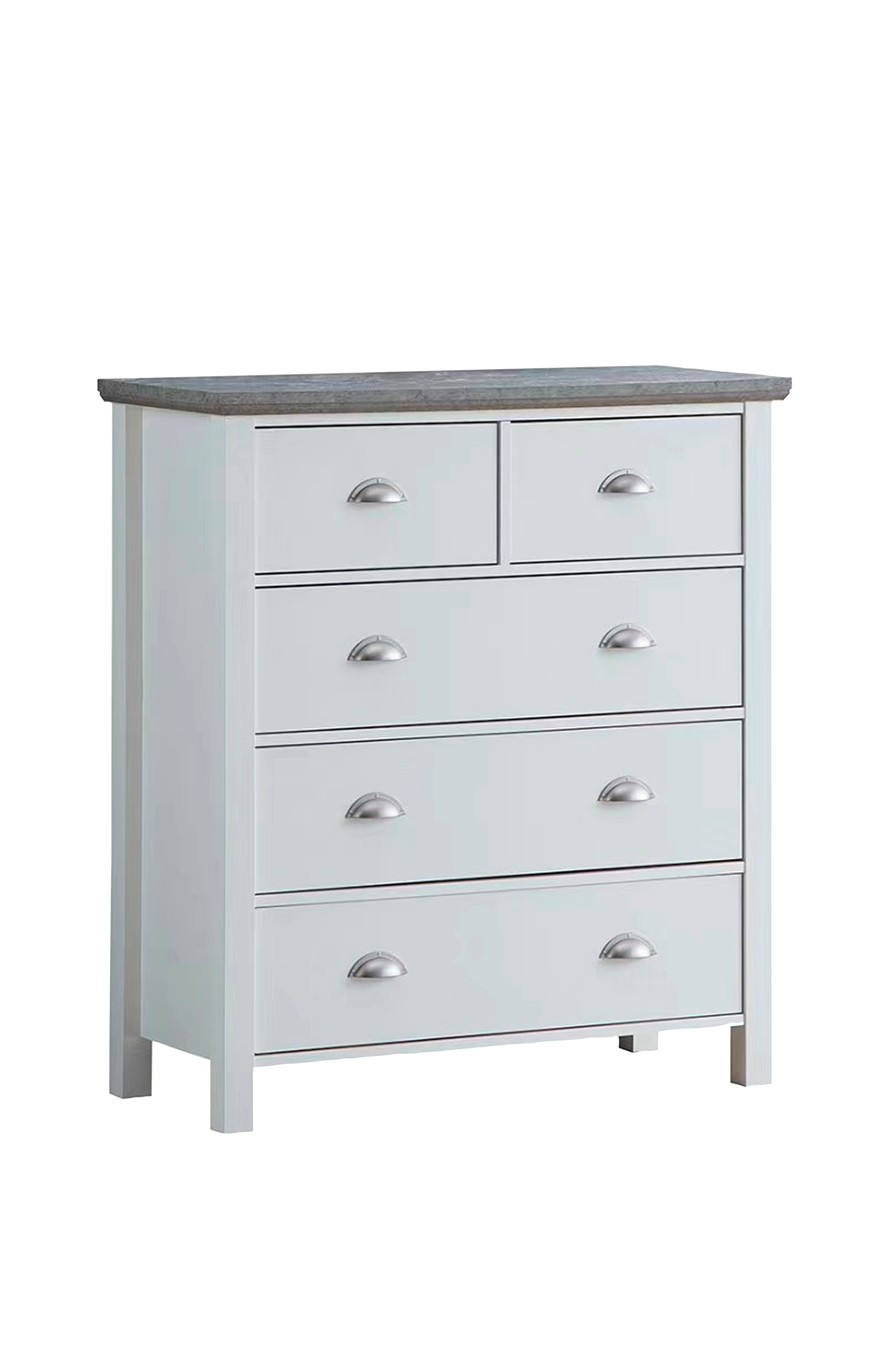 3+2-laatikkoinen lipasto toimitetaan osina. Mukana hyvät kokoamisohjeet. Helposti käsiteltävät laatikot liukuvat rullakiskoilla. Syviin laatikoihin mahtuu paljon tavaraa. Paino laatikoissa enintään 8 kg. Laatikoiden etupuolella tyylikkäät kahvat. Materiaali maalattua MDF-levyä.