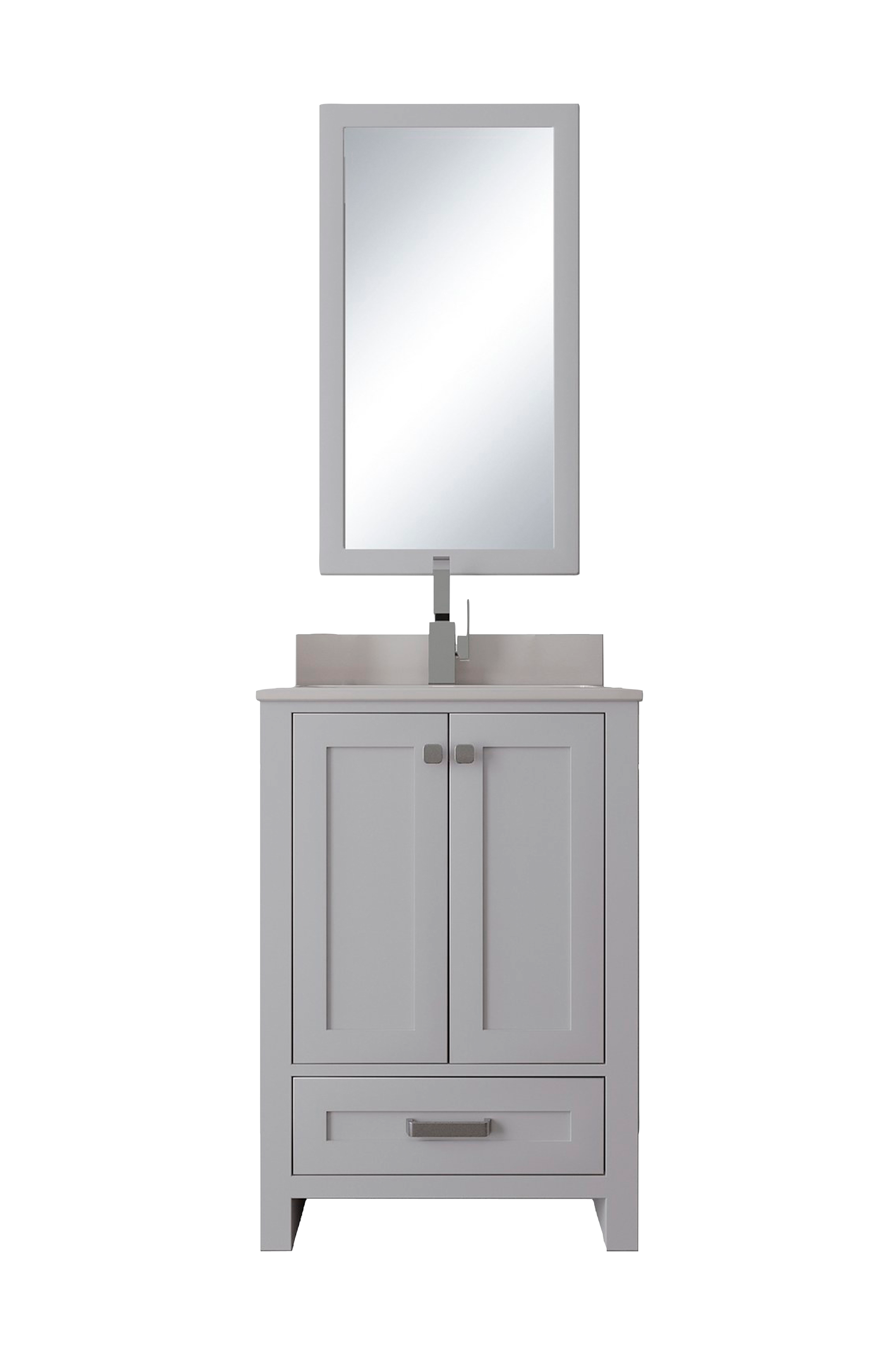 100% maalattua MDF-levyä (massiivipuuta) (paksuus: 18 mm) taso: 100% valkoista kvartsia & paikalleen asennettu pesuallas posliinia